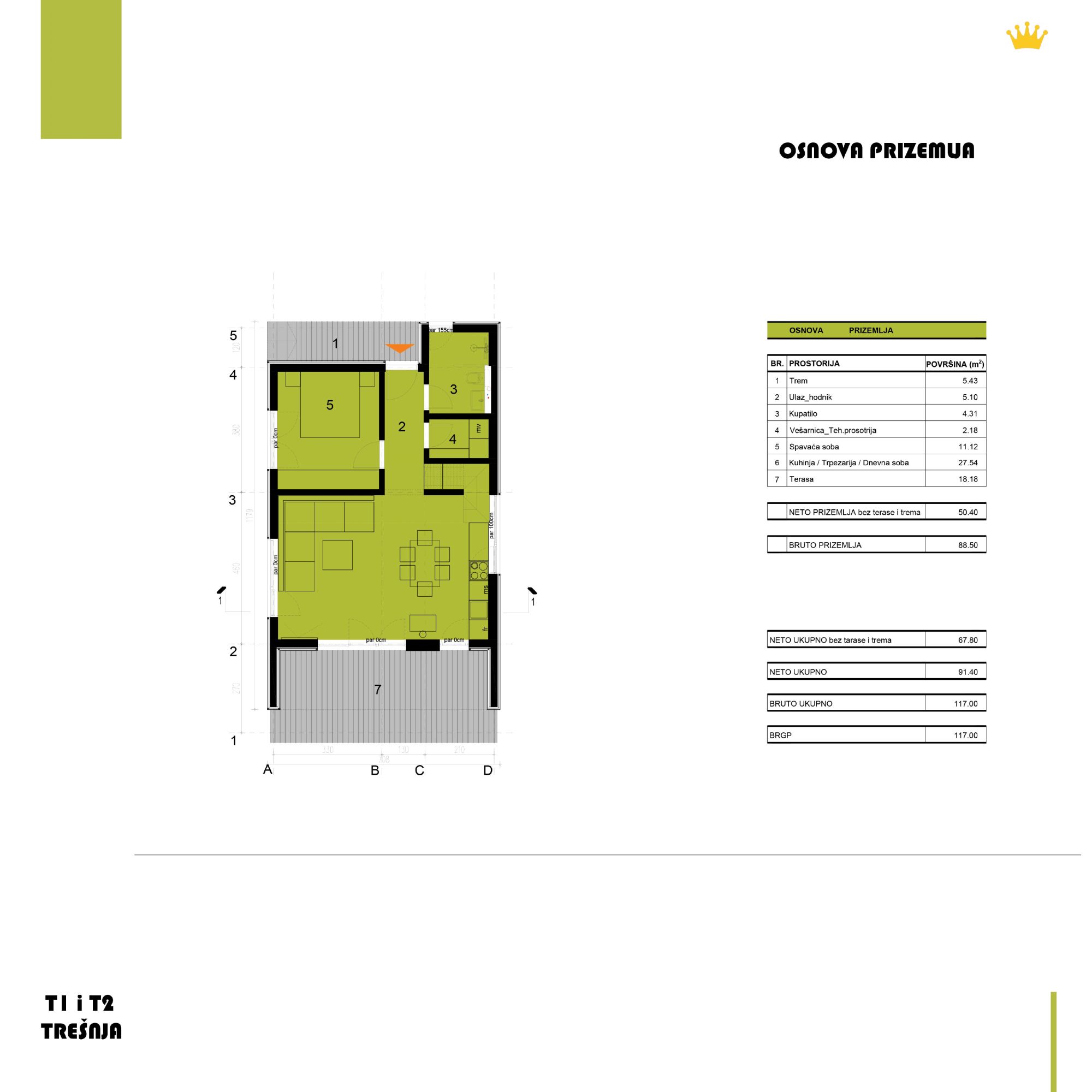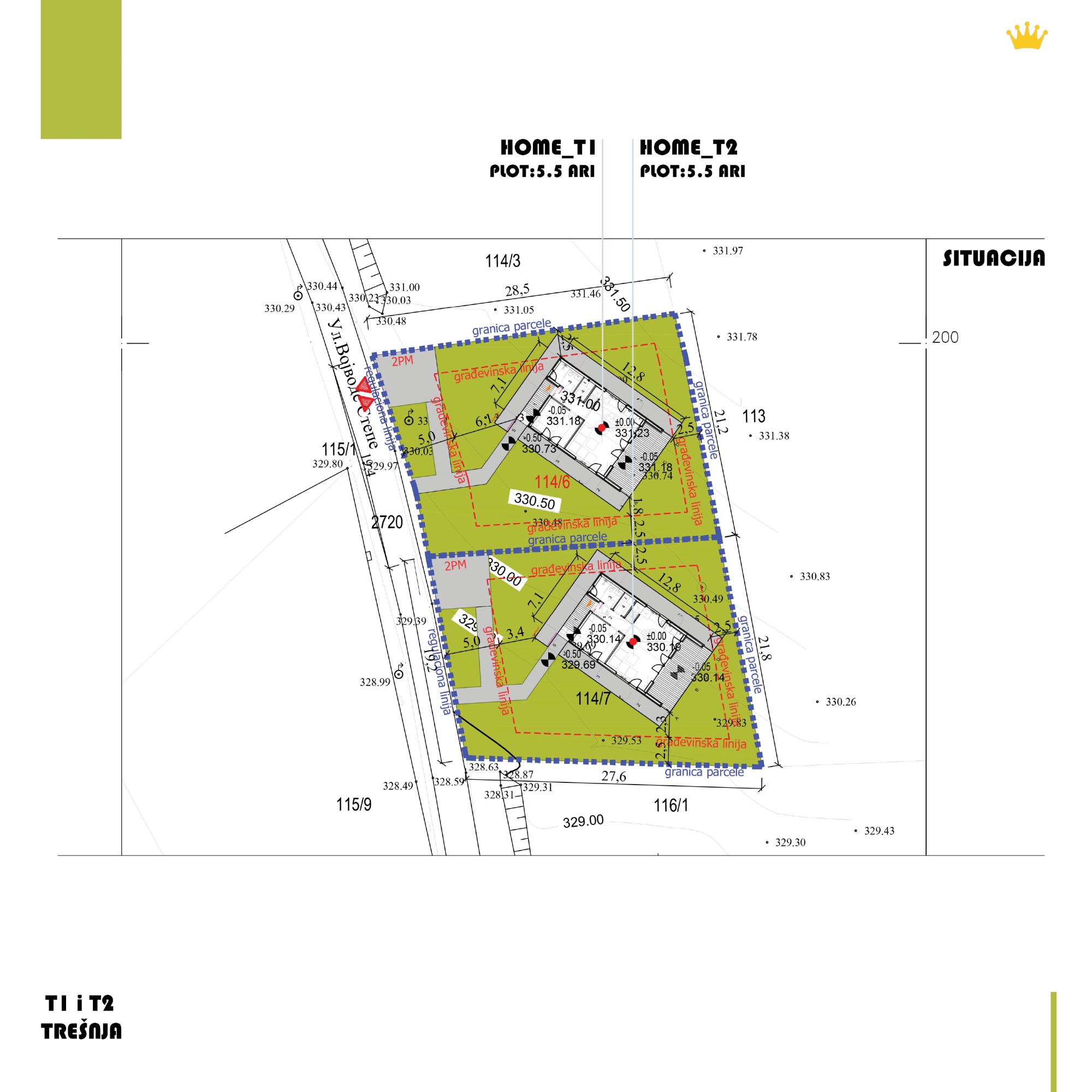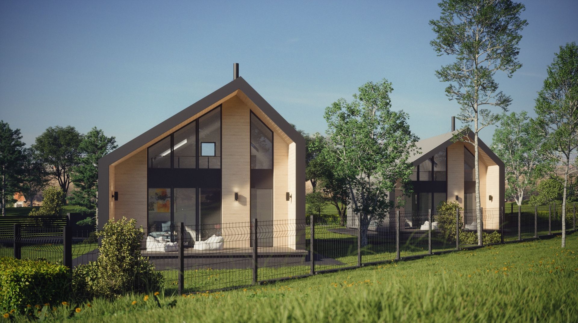 Svaka od kuća je površine 90 m² i nalazi se na zasebnom placu, a koncept idejnog rešenja zasniva se na tradicionalnom tipu kuće s dvovodnim krovom. Objekti su jednostavnih, čistih linija, odlično osvetljenog, prostranog enterijera i primer su modernog dizajna sa maksimalno iskorišćenim prostorom.