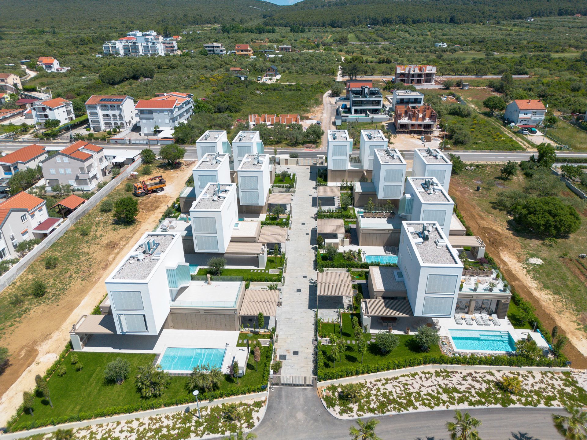 Istovremeno, svaka stambena jedinica, bez obzira na veličinu, ima svoju punu funkcionalnost, svoj komad spoljašnjeg prostora i pogledom dobacuje do pučine, nezavisno od toga da li je izgrađena u prvom ili zadnjem, četvrtom redu od mora.
