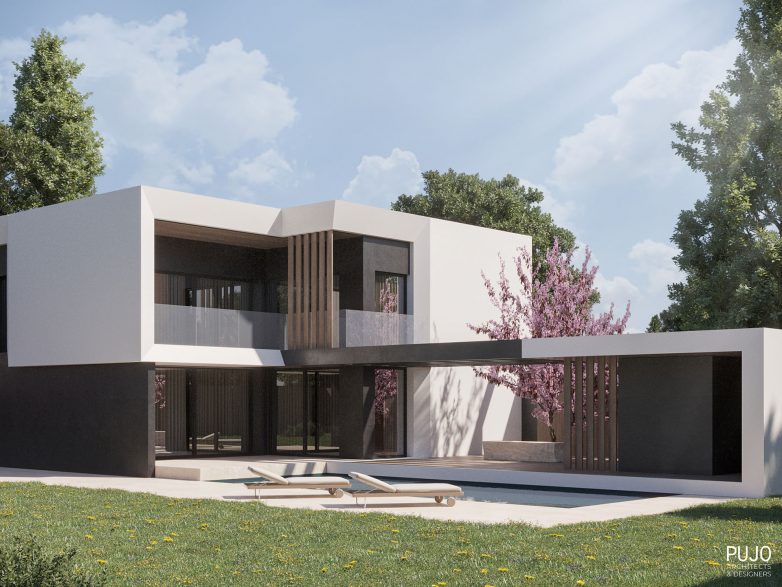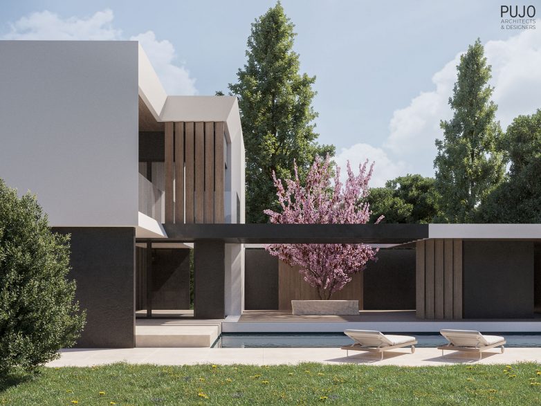„Istovremeno, sa zadnje strane je predviđeno da glavni objekat zalazi u dvorište i ’pruža ruke’ ka susednom paviljonu obuhvatajući ga u još jedan ram koji, ovoga puta, uokviruje otvoren prostor uz bazen i formira trem“, kažu iz Pujo Architects & Designers.