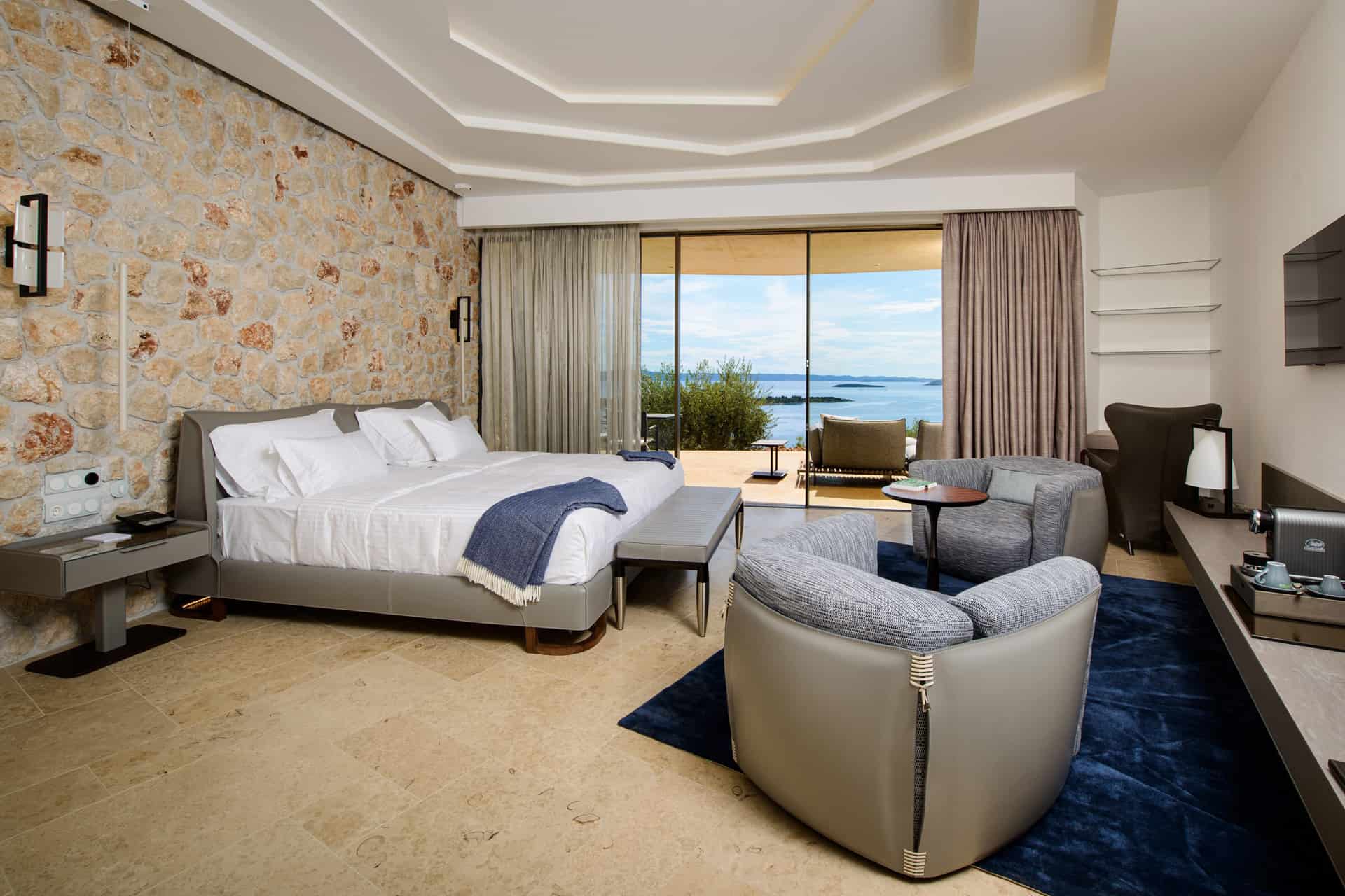 Dimenzije soba kreću se oko 70 kvadratnih metara, a suiteova oko 90 m2, s privatnim terasama koje su zapravo produženi dnevni boravci. Sve sobe i suiteovi opremljeni su ekskluzivnim nameštajem Giorgetti, imaju prostrana kupatila s tuš-kabinama, dva umivaonika i kade. Kao dodatak vrhunskom izgledu soba i suiteova, sva posteljina nosi potpis najboljeg italijanskog proizvođača tkanina, Frette.