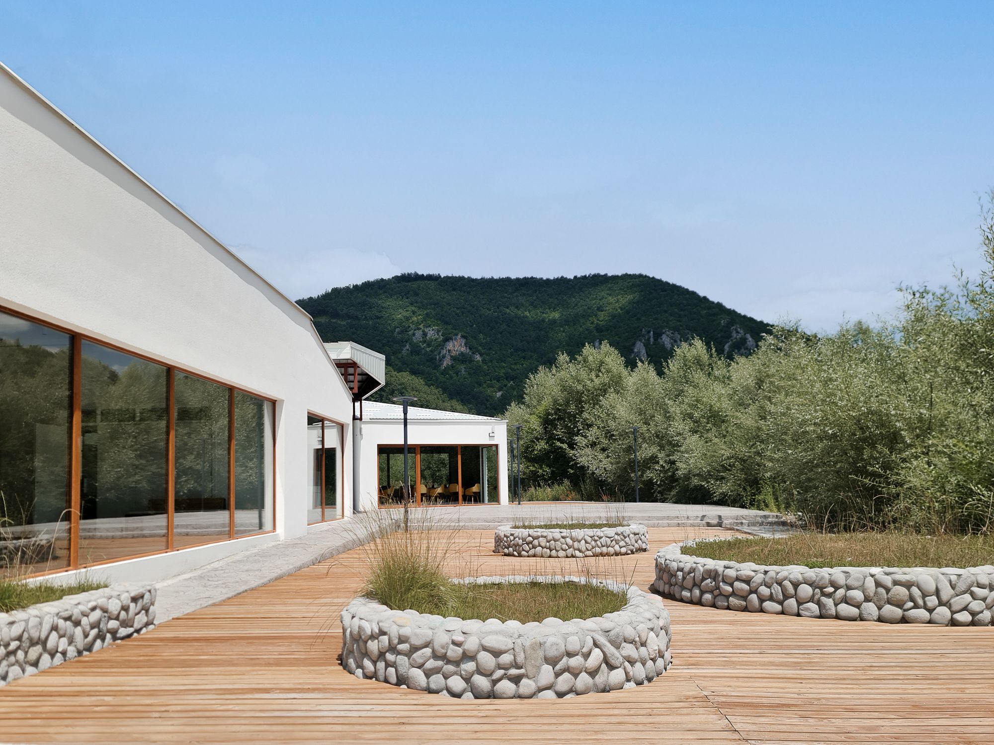„Poseban kvalitet okolnog uređenja predstavlja terasa na delu lokacije ka reci. Do nje se dolazi kroz središte celog objekta na koje se naslanjaju sve funkcionalne celine“, navode iz ARHINGinženjeringa.