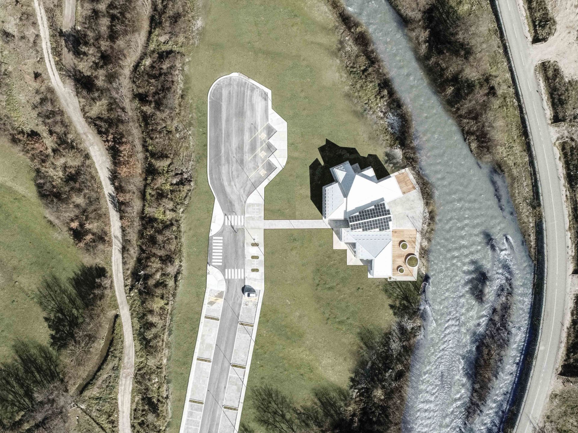 „Zbog porasta nivoa reke Bistrice u određenom delu godine, kota gotovog poda objekta korespondira koti visokih voda reke. Konfiguracija terena i funkcionalne potrebe uslovile su rešenje koje se logično implementira u teren“, navode iz ARHINGinženjeringa.