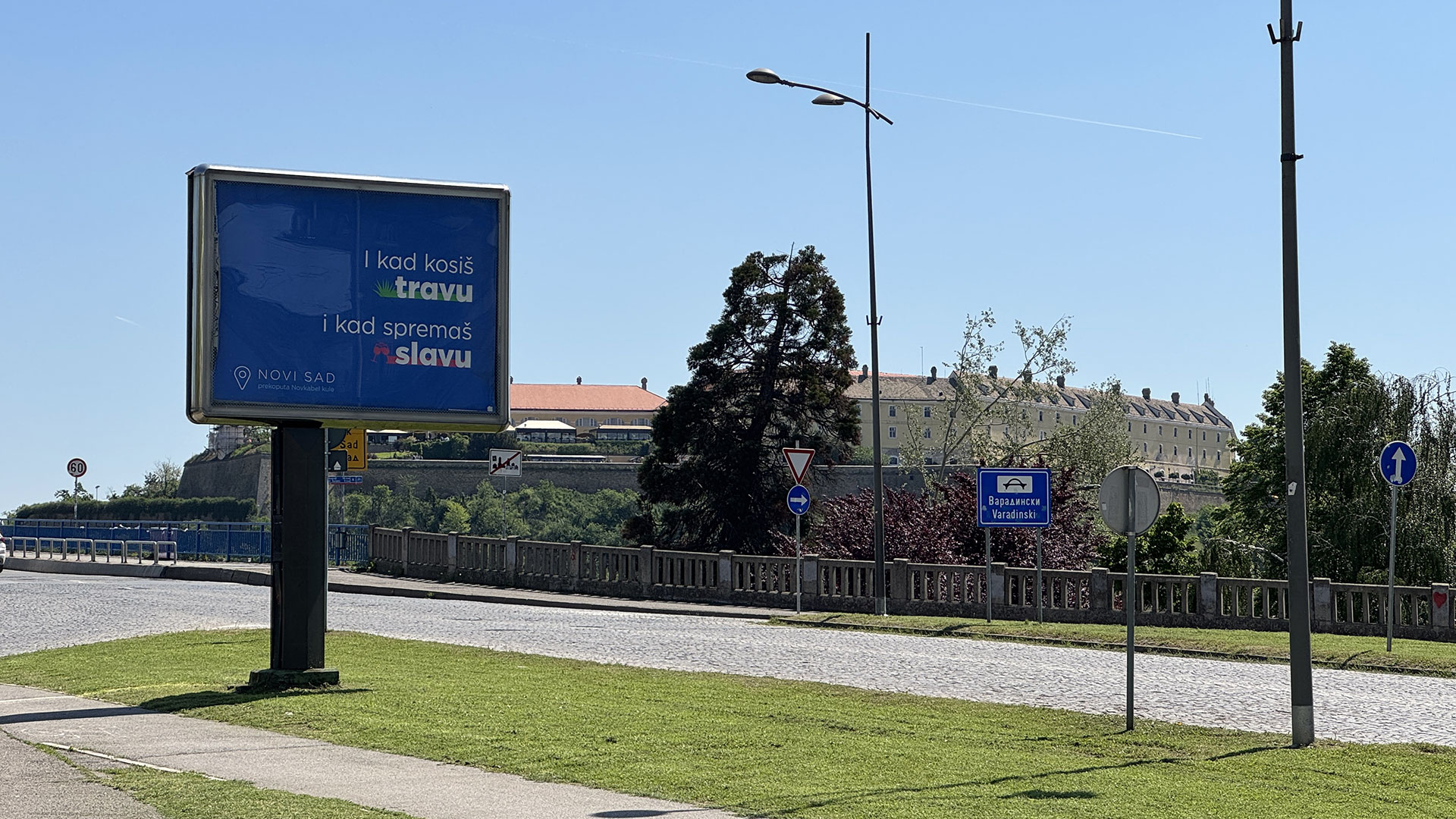 Od bilborda se ne vidi Petrovaradinska tvrđava; Foto: Gradnja
