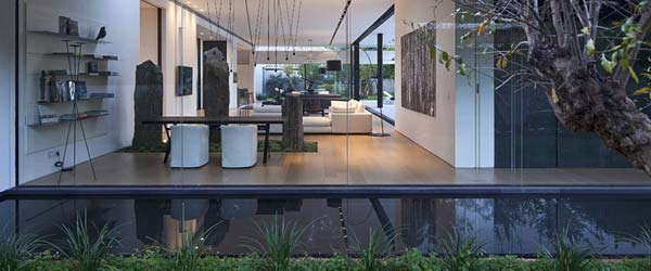 Izraelski arhitekta Pitsou Kedem, koji potpisuje projekat ove vile, akcenat je stavio na suptilnu traniziciju između eksterijera i enterijera. Kuća od 550 kvadratnih metara prožeta je dvorištem tako da ono praktično postaje sastavni deo dnevne sobe. Taj utisak je dodatno pojačan zahvaljujući staklenim zidovima koji preovlađuju na strani koja gleda ka bazenu.