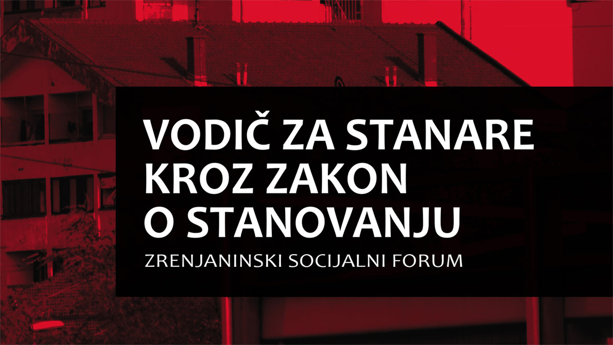 Zrenjaninski socijalni forum objavio je Vodič za stanare u nadi da će tako pomoći građanima da bolje upoznaju svoju stanarsku situaciju, da se bolje samoorganizuju i zaštite svoje interese i autonomiju.