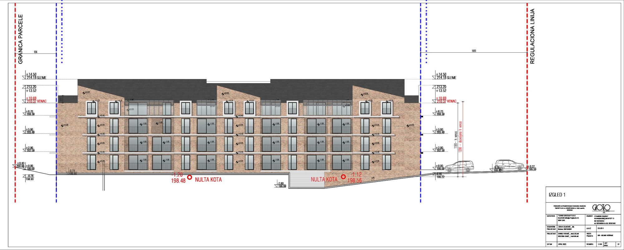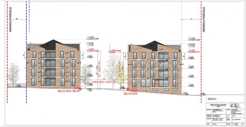 Prema projektnoj dokumentaciji, na parceli povšine 5.645 m2 predviđena su tri stambena objekta spratnosti Po(Su)+P+2+Pk.