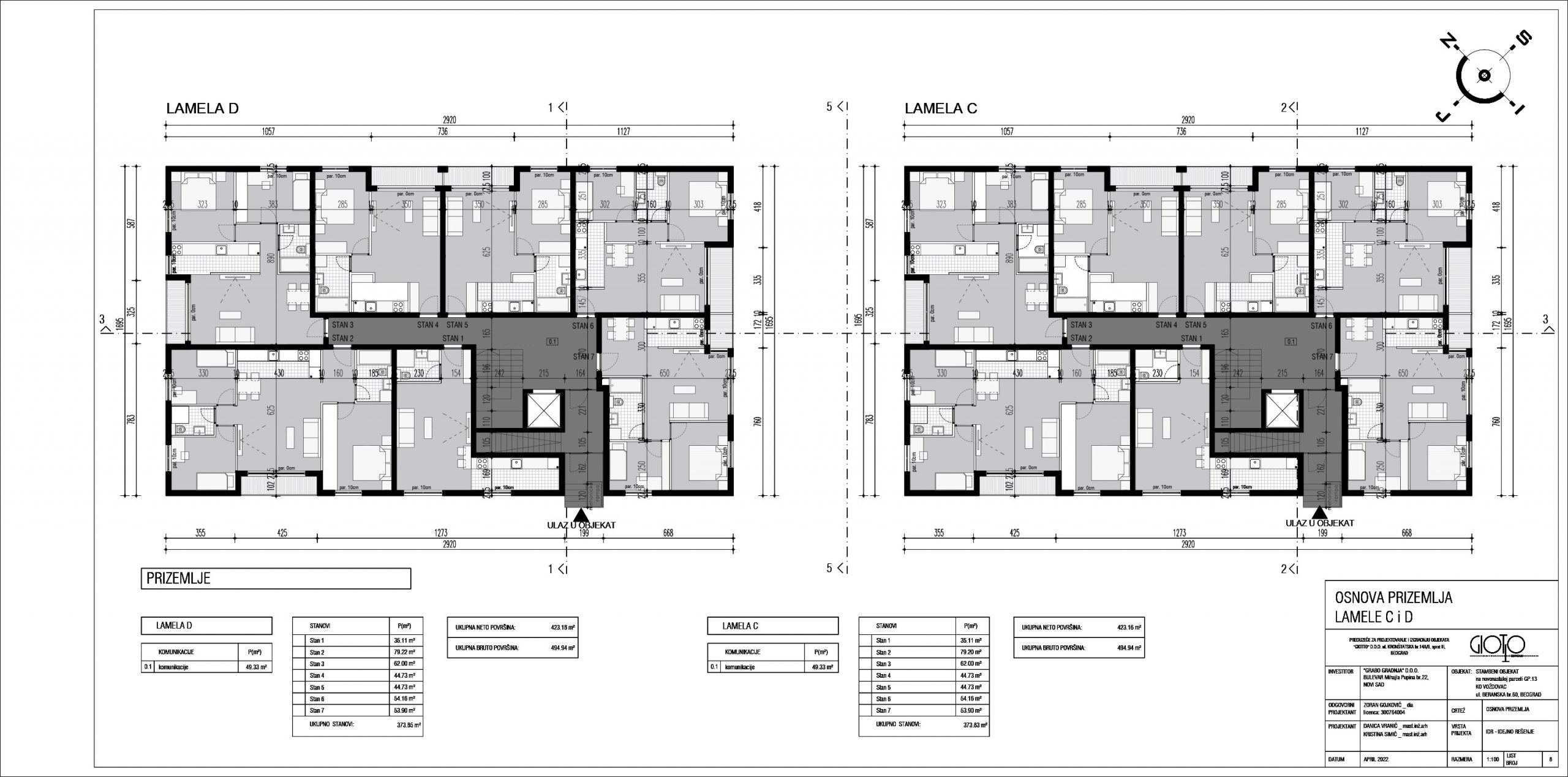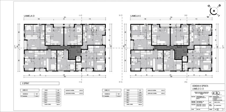 Objekti lamela C i lamela D su zasebni sa po 28 stanova i srednjom garažom sa po 20 garažnih mesta, dok je pristup garažama omogućen preko rampi.