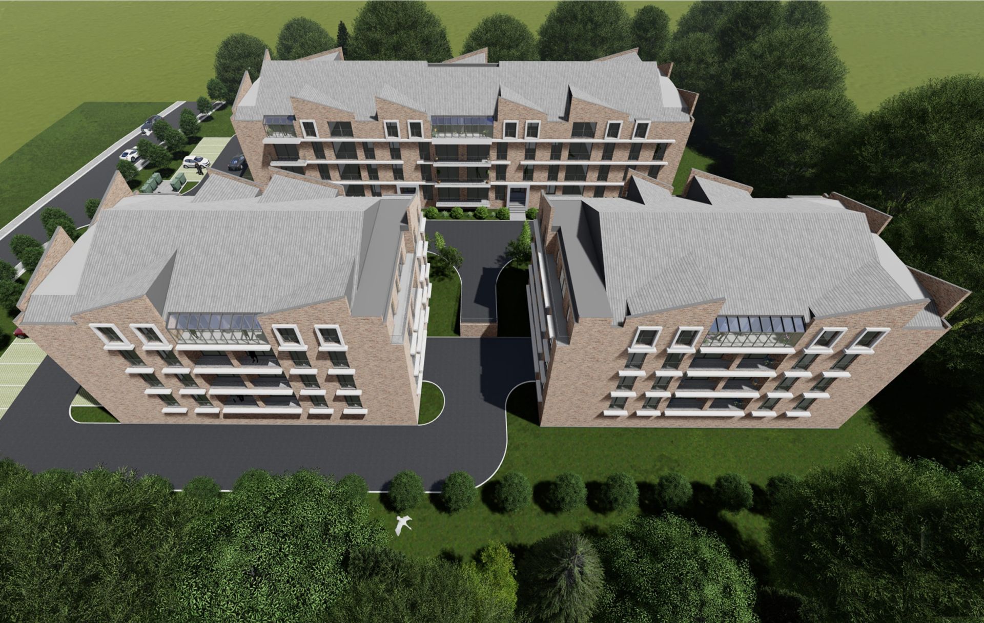 Unutar parcele između objekata formirane su interne kolsko-pešačke saobraćajnice, slobodne i zelene površine u javnom korišćenju. Stambeni ulazi u lamele A, B, C i D su iz unutrašnjeg dela parcele formiranog u osovini između objekata.