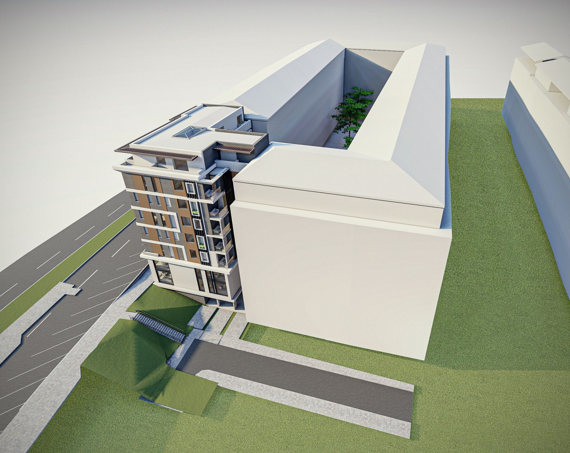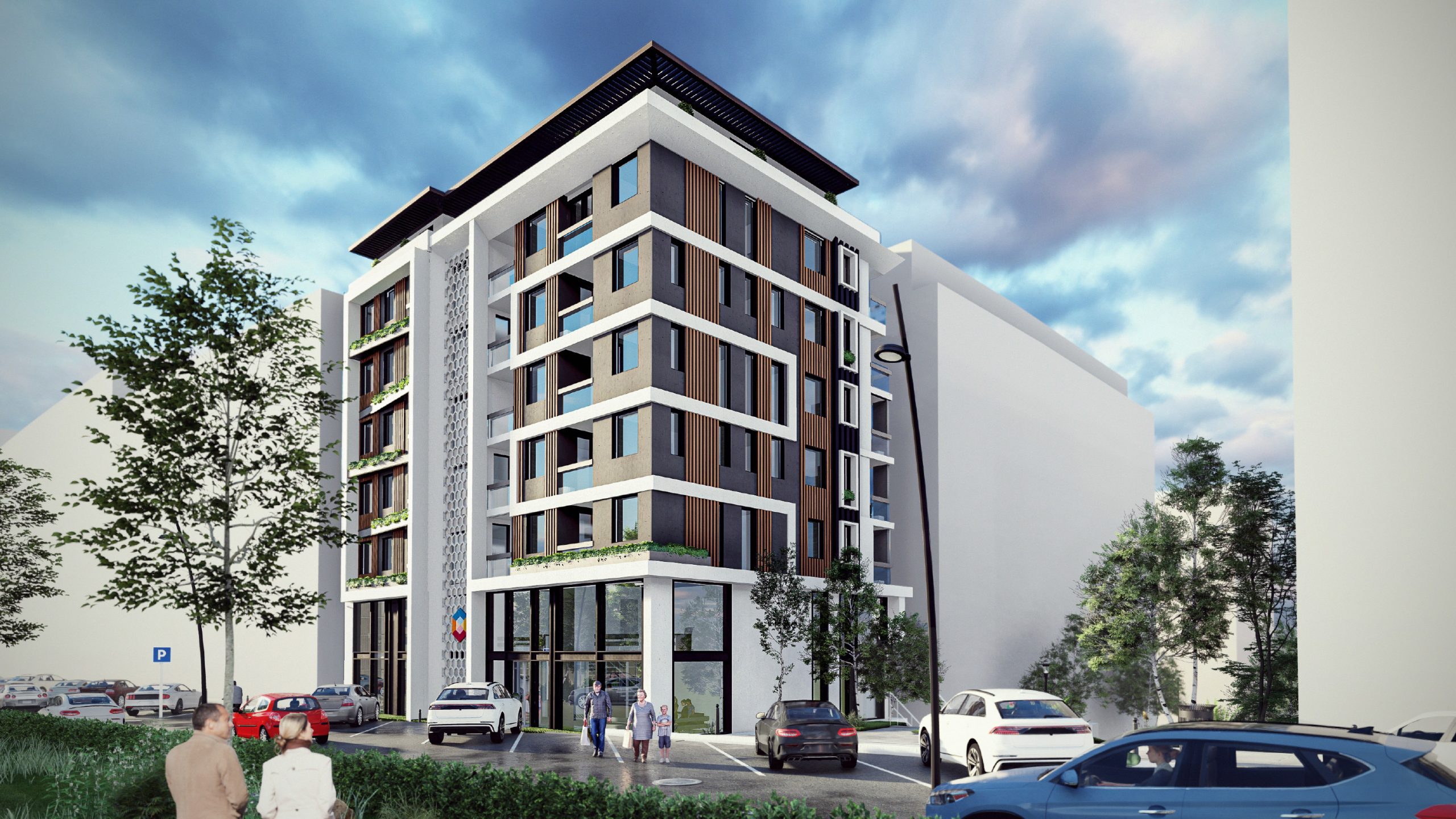 Ukupno je projektovano 25 stambenih jedinica i jedan dupleks poslovni prostor. U tri podzemne garaže i na otvorenom parkiralištu u okviru parcele predviđeno je 38 parking mesta.