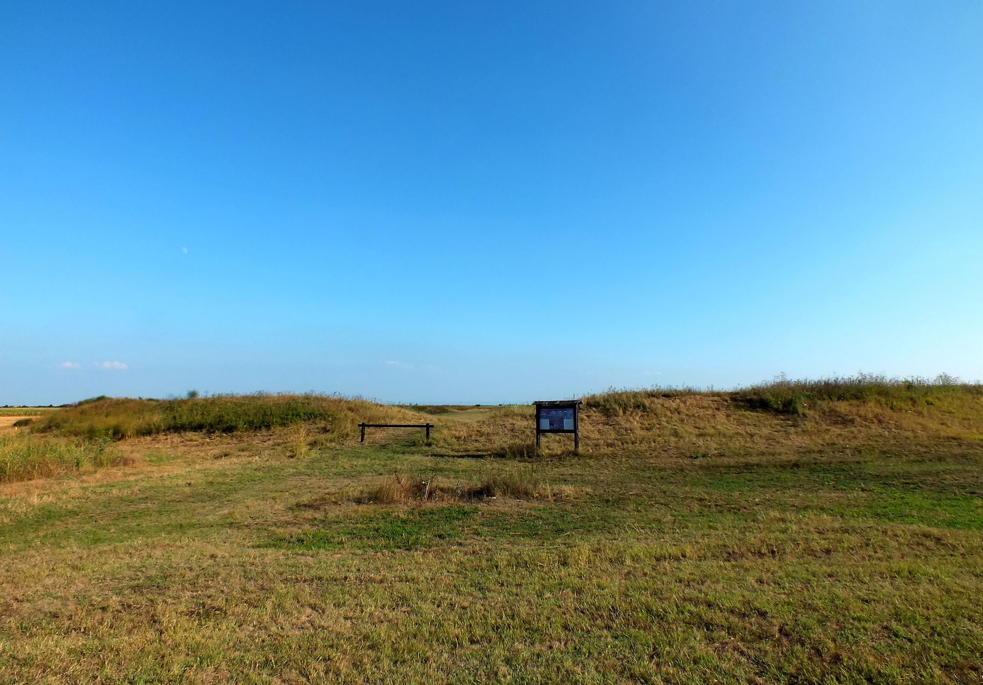 Elipsoidnog oblika, dimenzija 190 x 130 metara, opasano masivnim zemljanim bedemima širine 12, a visine 3 metra, služilo je kao trgovački i poljoprivredni centar sve do prvog veka nove ere.