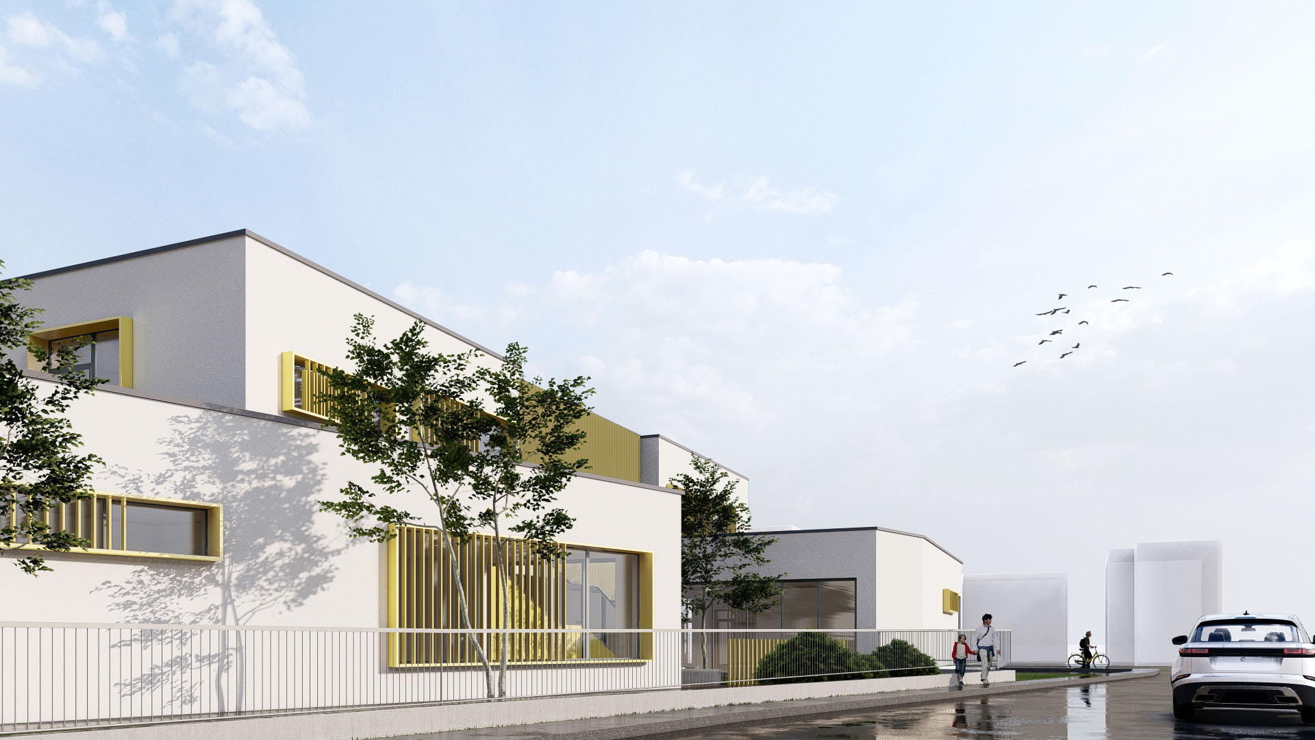 „Bojama, materijalizacijiom, različitim otvorima koji su u kontrastu jedni sa drugima objekat poprima vizualni identitet dečijeg vrtića koji treba stvoriti ugodan i kvalitetan ambijent prvenstveno za najmlađu populaciju korisnika“ – navode arhitekte.