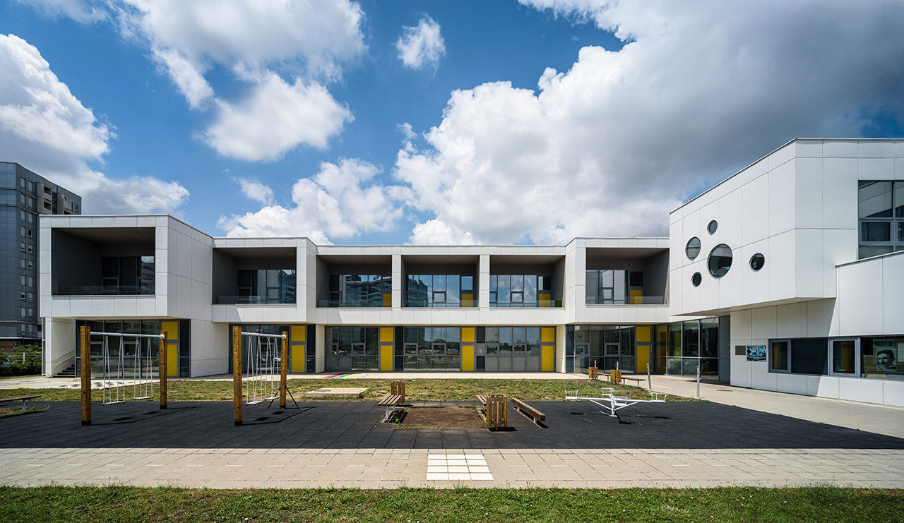 Autori su eksperimentisali s kontekstom i lokacijom, dobivši objekat koji odudara od ostatka obližnje arhitekture a opet se u isto vreme fino nadovezuje. Zahvaljujući svojoj kubičnoj formi s unutrašnje strane, objekat se otvara prema dvorištu pružajući deci sigurno mesto za igru, dok u isto vreme s kružnom fasadom sa suprotne strane pravi gard od prometne saobraćajnice.