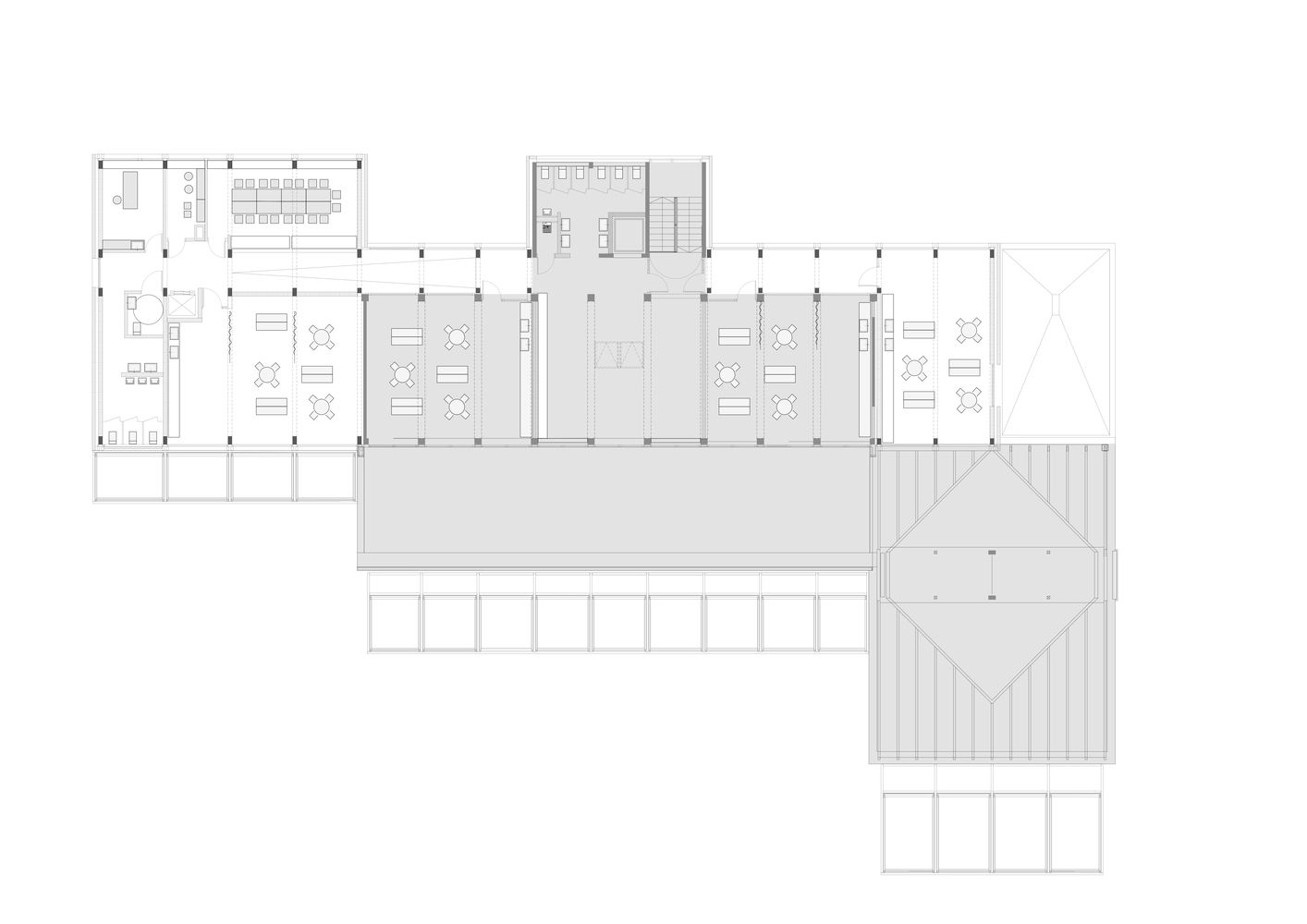 Osim ove intervencije pažljivo su rekonstruisani perimetarski zidovi u prizemlju, kako bi se uvelo više prirodnog svetla, te su prethodno ograničena područja pretvorena u otvorenije i privlačnije prostore.