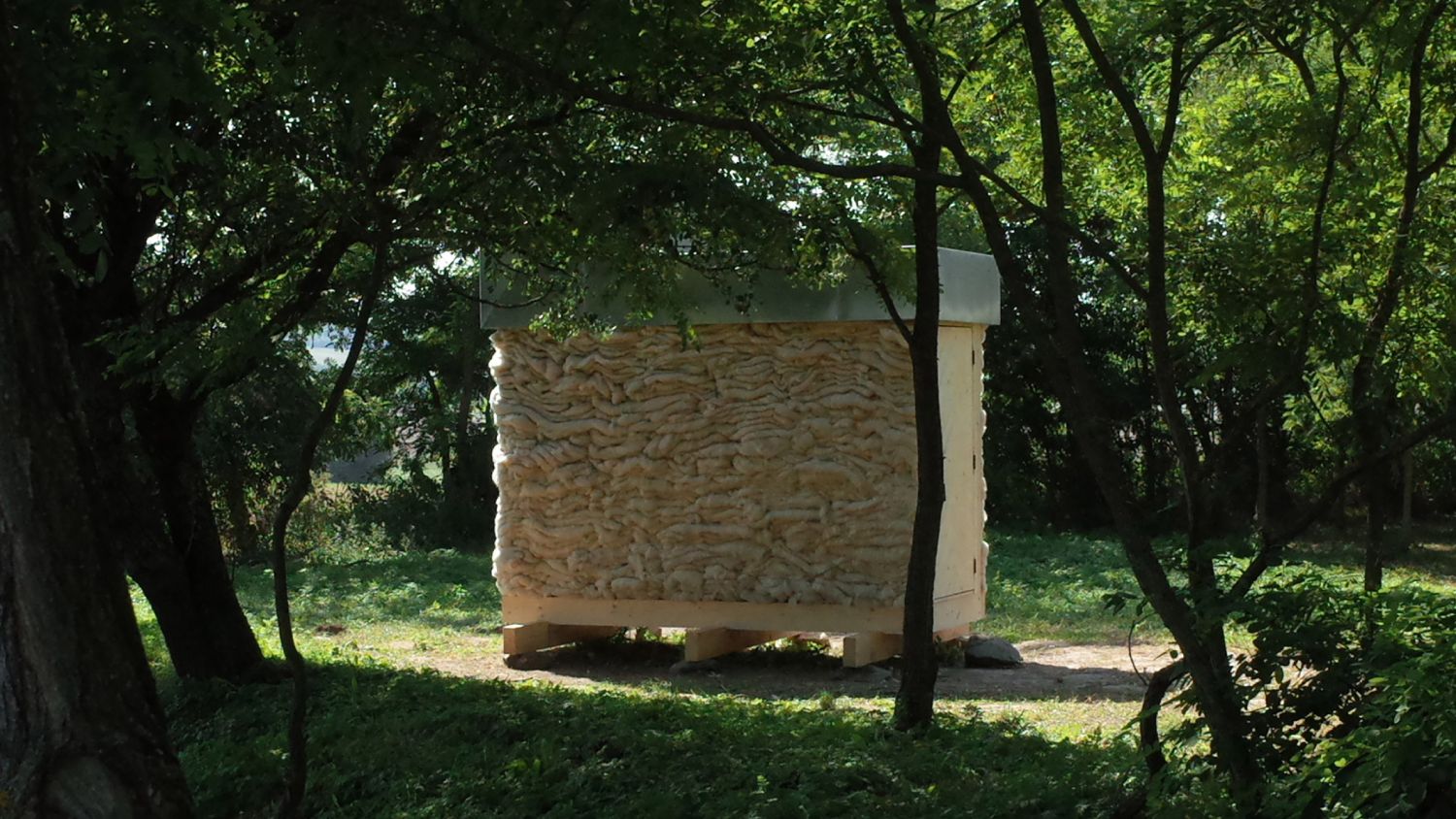 Objekat je napravljen od drvenog rama, te su debeli snopovi vune korišćeni kako bi se ispunila unutrašnjost, izolujući je na ovaj način od bilo koje buke iz okruženja.