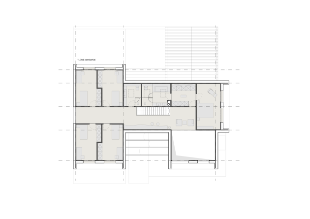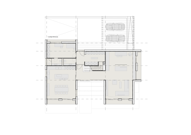 Najkraća lamela proširena je nadstrešnicom za automobil na koju je preko gredica stavljen pleksiglas.