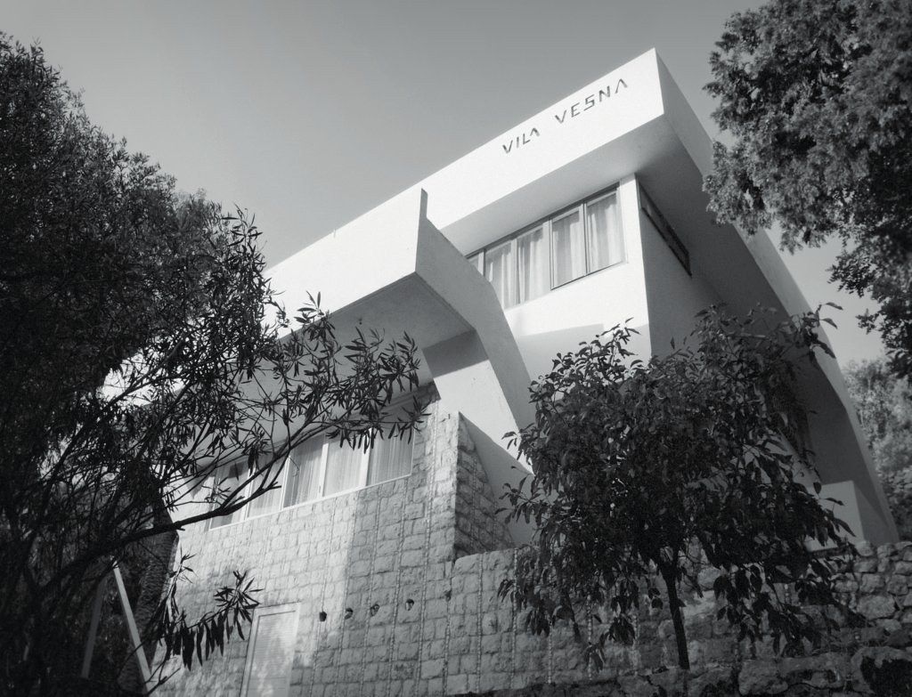 Fasada vile Vesna u nižoj etaži i vile Svid u kompletnim zidnim površinama, presvučene su rustičnim kamenim kvaderima, koji ubrzo postaje prepoznatljiv potpis arhitekte Dobrovića.