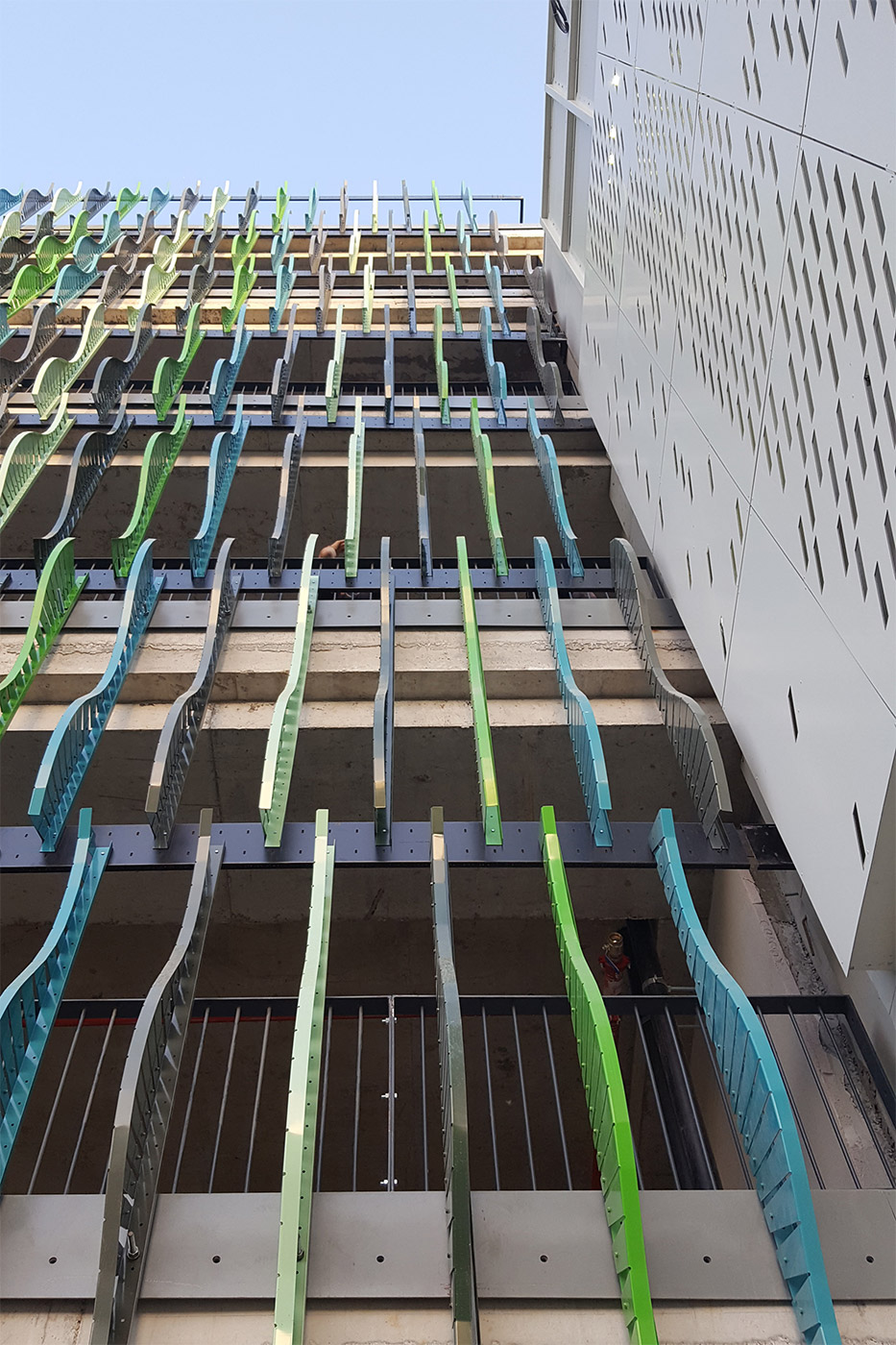 Na sledećim fotografijama možete videti fotografije fasade koja se radi od Alubonda kao i od koloritno plastificiranih čeličnih profila na garaži koji će svi zajedno biti osvetljeni pozadinskom rasvetom.