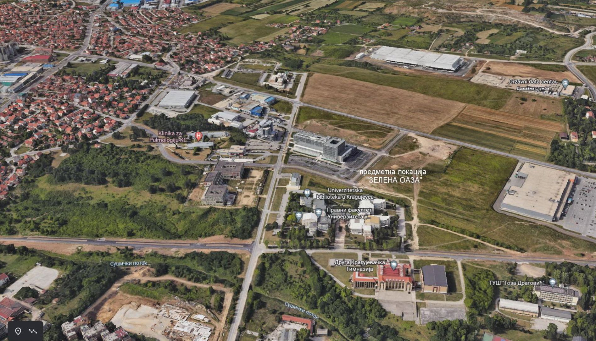 Grad Kragujevac oglasio je nedavno javnu prezentaciju urbanističkog projekta za izgradnju stambeno-poslovnog kompleksa „Zelena oaza“ u Ulici Miodraga Vlajića Šuke, nedaleko od lokacije gde je u martu najavljena i izgradnja sedmospratnice sa 28 lokala, 126 stanova i 6 poslovnih prostora.