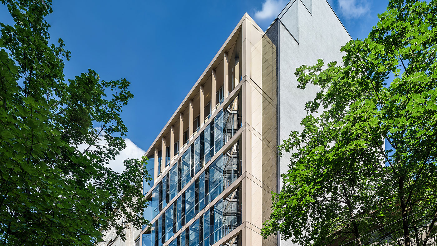 Zahvaljujući svojoj kubičnoj fasadi koja u isto vreme deluje monumentalno ali i svedeno, čemu najviše doprinosi staklene ploče, ova zgrada ostavlja utisak elegantne građevine zbog čega se savršeno uklapa u okruženje.