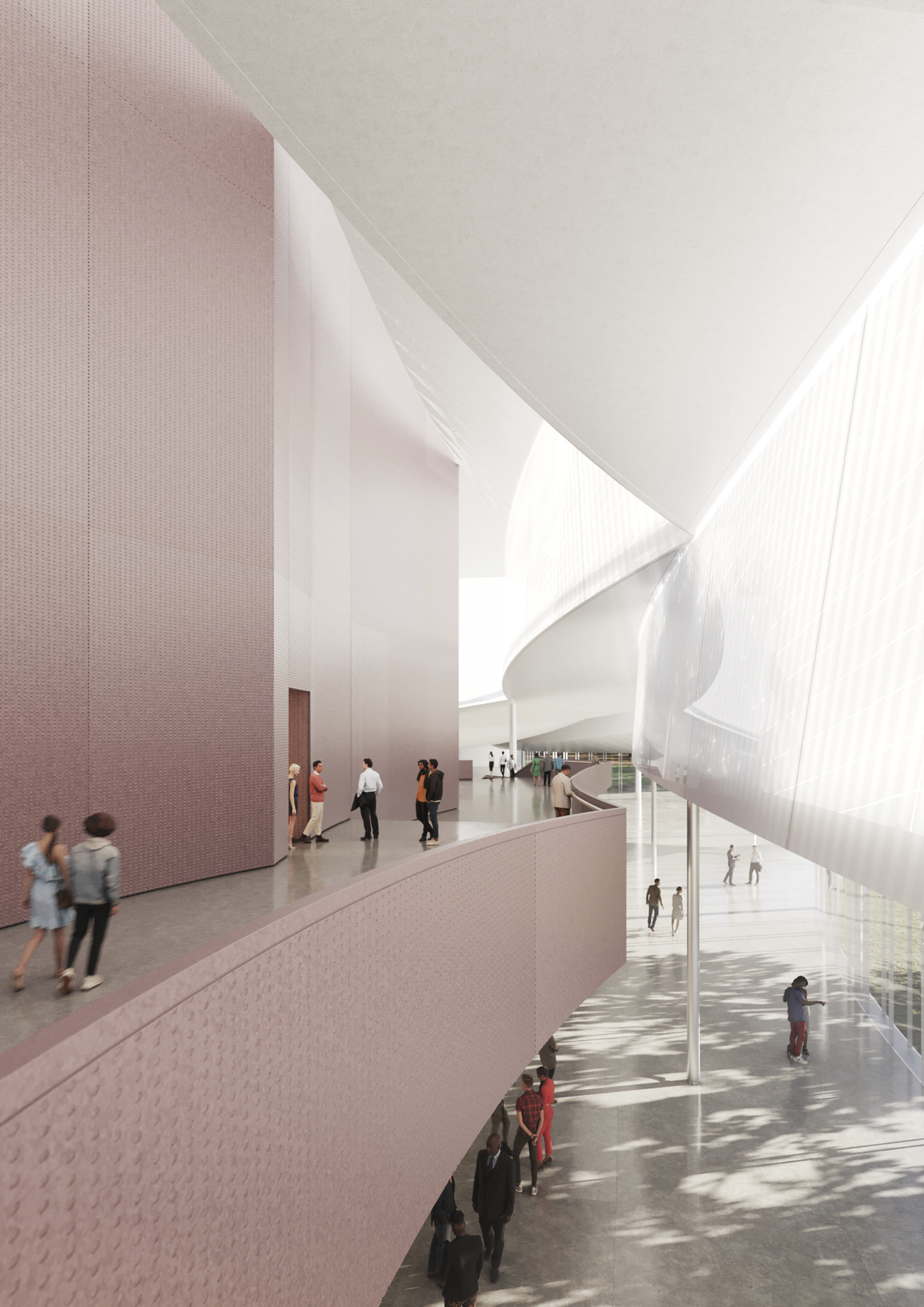 Кroz ovako uređen prostor stvorena je zgrada bez prednje i zadnje strane, što rezultira jednom arhitektonskom panoramom.