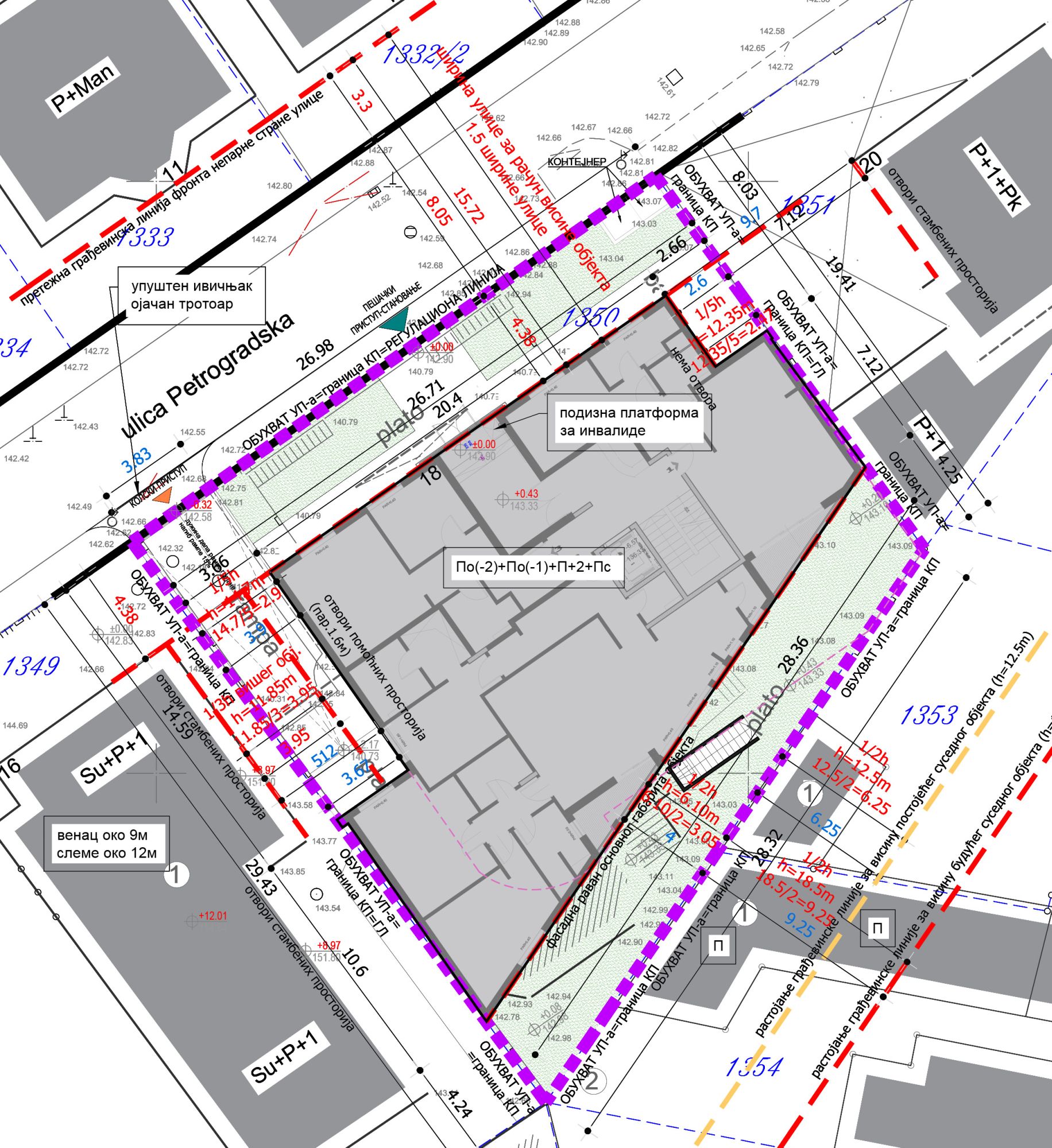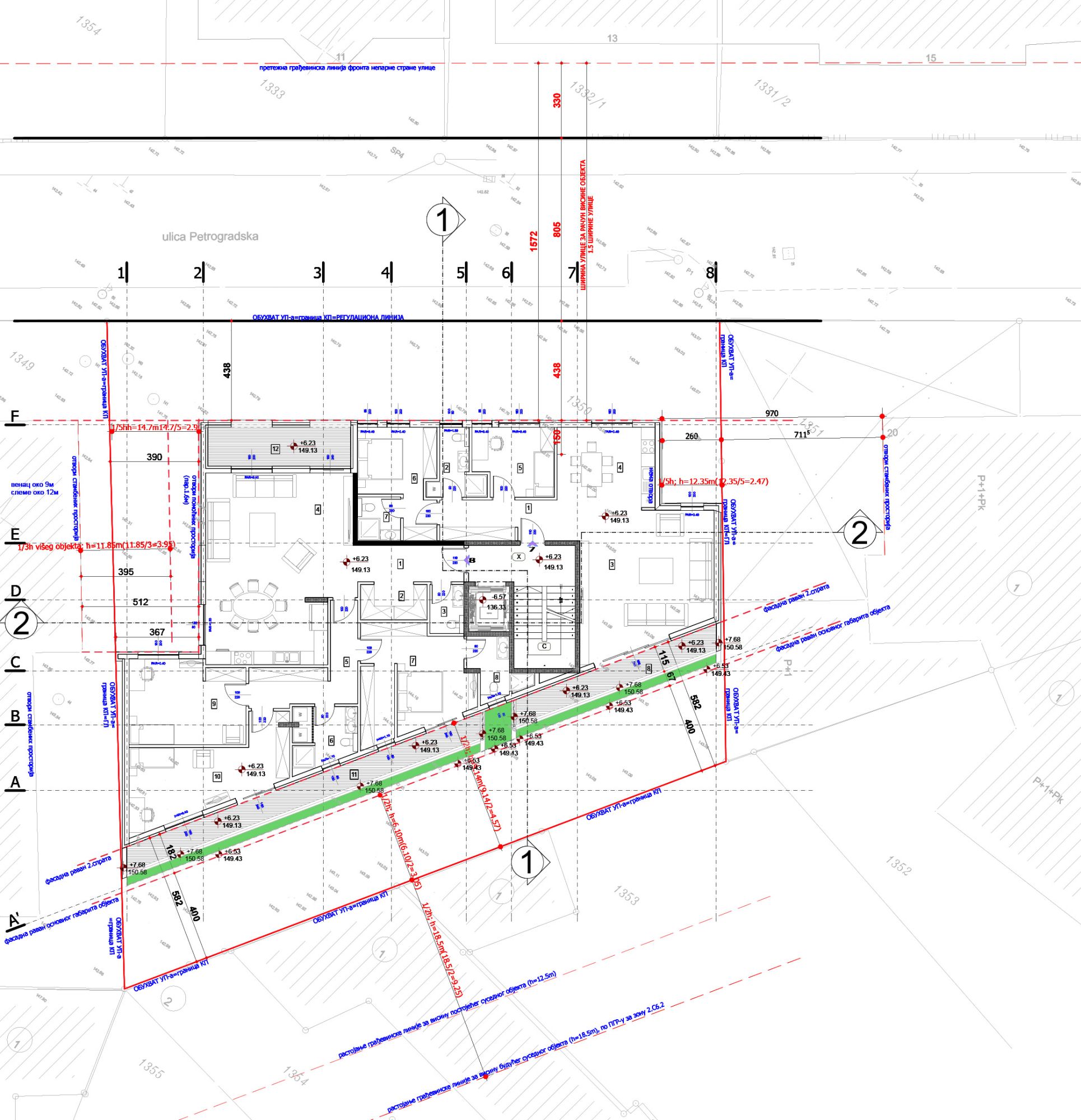 Predmetna lokacija se nalazi u okviru bloka čija je primarna funkcija višeporodično stanovanje, a nalazi se u zoni tranformacije porodičnog stanovanja u delimično formiranim gradskim blokovima u višeporodično stanovanje, u Petrogradskoj ulici, iz koje je moguć pristup. Na parceli postoje dva objekta, čije je rušenje planirano.