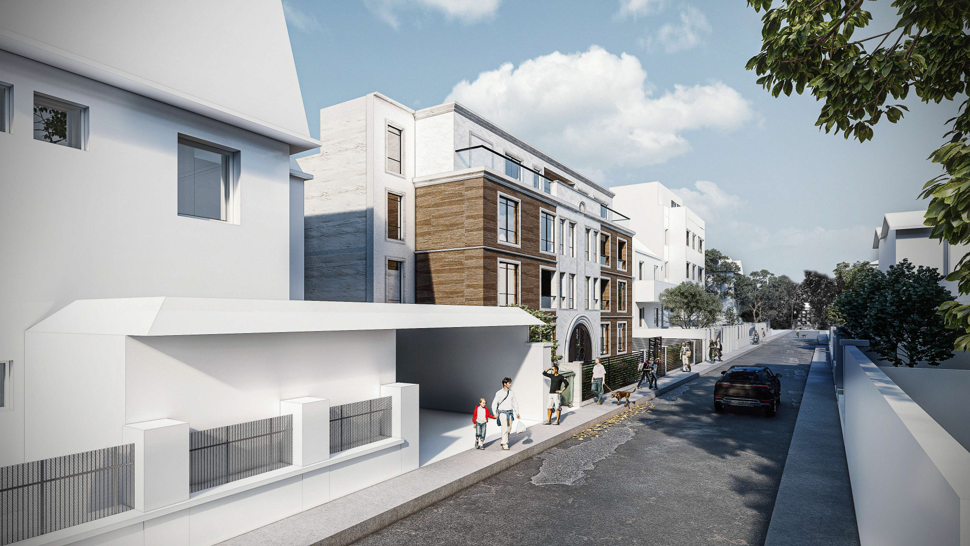 Ukupno je projektovano 9 stambenih jedinica, a u dve podzemne etaže planirano je 16 parking mesta, od kojih je 1 za lica sa posebnim potrebama. Pešački i kolski pristupi su razdvojeni. Stambeni ulaz je sa etaže prizemlja.