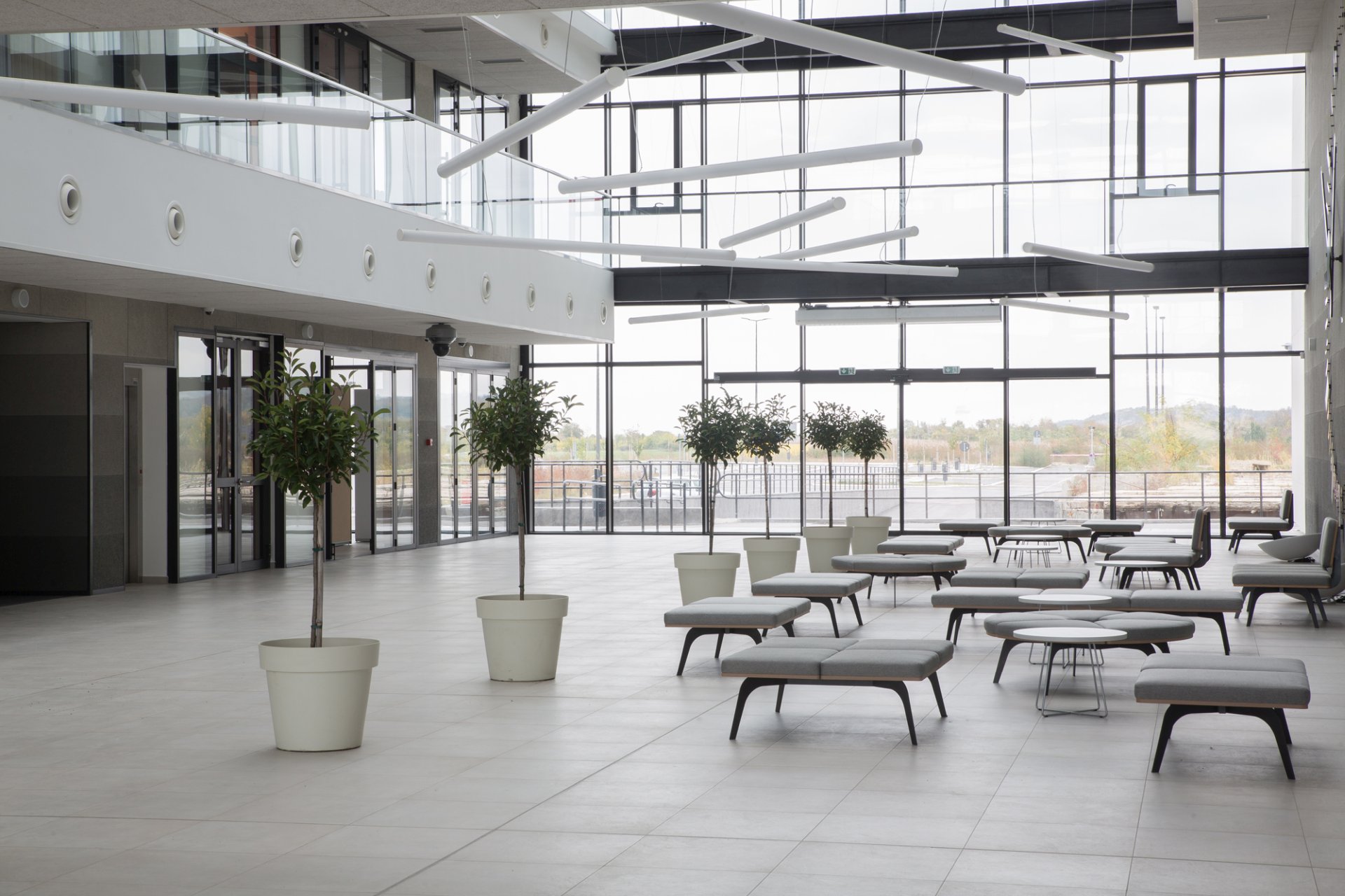objekat je ok zamišljen, atrijum mi je jedino bogovski urađen, ostalo užas kiča, užas plastike, crne i sive boje, iverice,medijapana, oštrih uglova, nigde prirodnog drveta, usklađenih tonova i nijansi, nigde drveta u saksiji (osim 6 fotinija veštaka) , nigde pletiva, pruća, cveća niđe! paravani u radnom prostoru u znaku austrijske zastave ,fali grb crnog orla! na momenat sam pomislio da su dani austrije, strava od gluposti i sterilnosti !