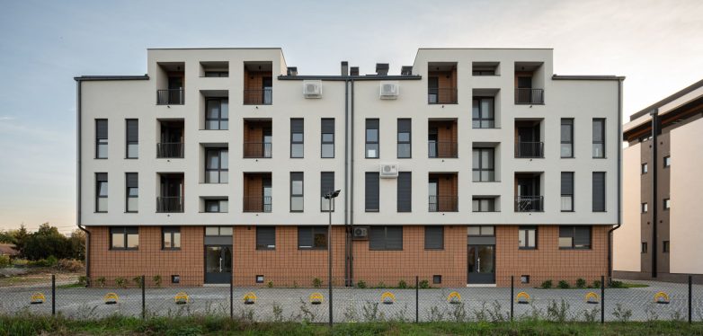 Na dve parcele, istovetnih dimenzija i površina, formirana su dva objekta sa istim brojem rezidencijalnih jedinica, projektovani kao objedinjena arhitektonska celina.