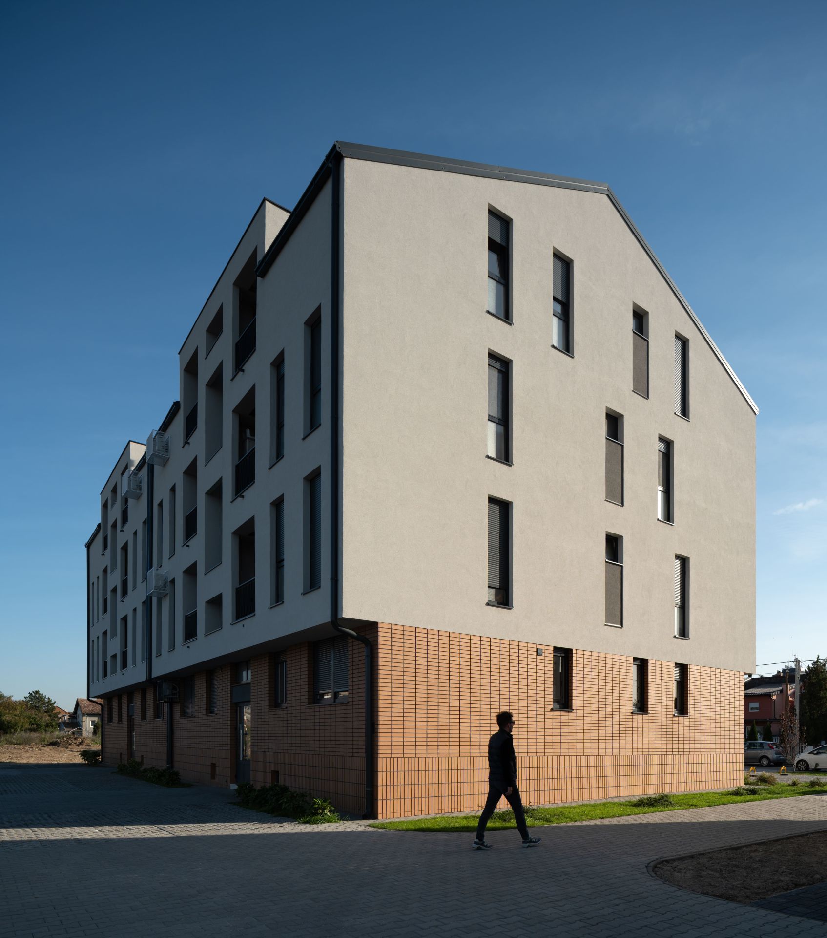 Projektovan 2021. a završen 2024. godine, ovaj dvojni višeporodični stambeni objekat u Ulici Pavla Jurišića Šturma u Šapcu arhitektonska je vizija Aleksandra Lukića iz lokalnog biroa Praksa 59, s čijim radom smo vas premijerno upoznali u junu 2022. godine, kada je njihov klijent, kao i ovog puta, takođe bio GD “Luna-stan“ iz Šapca.