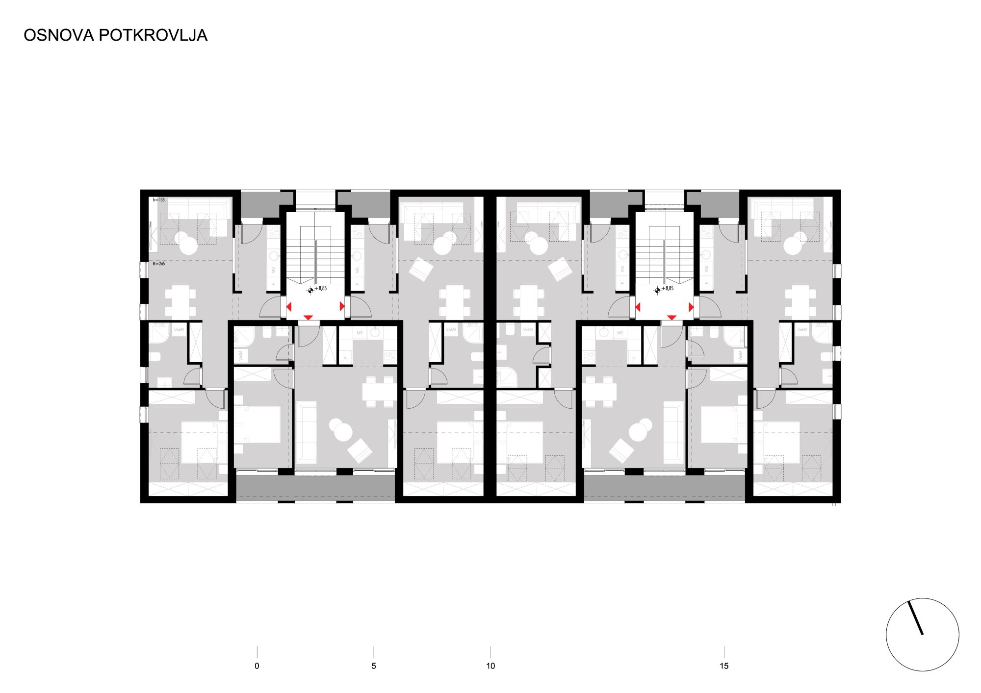 S obzirom da su u pitanju dve nezavisne katastarske parcele, istovetnih dimenzija i površina, formirana su dva objekta sa istim brojem rezidencijalnih jedinica, projektovani kao objedinjena arhitektonska celina, čime je formiran arhitektonski niz dvojnih višeporodičnih rezidencijalnih objekata.