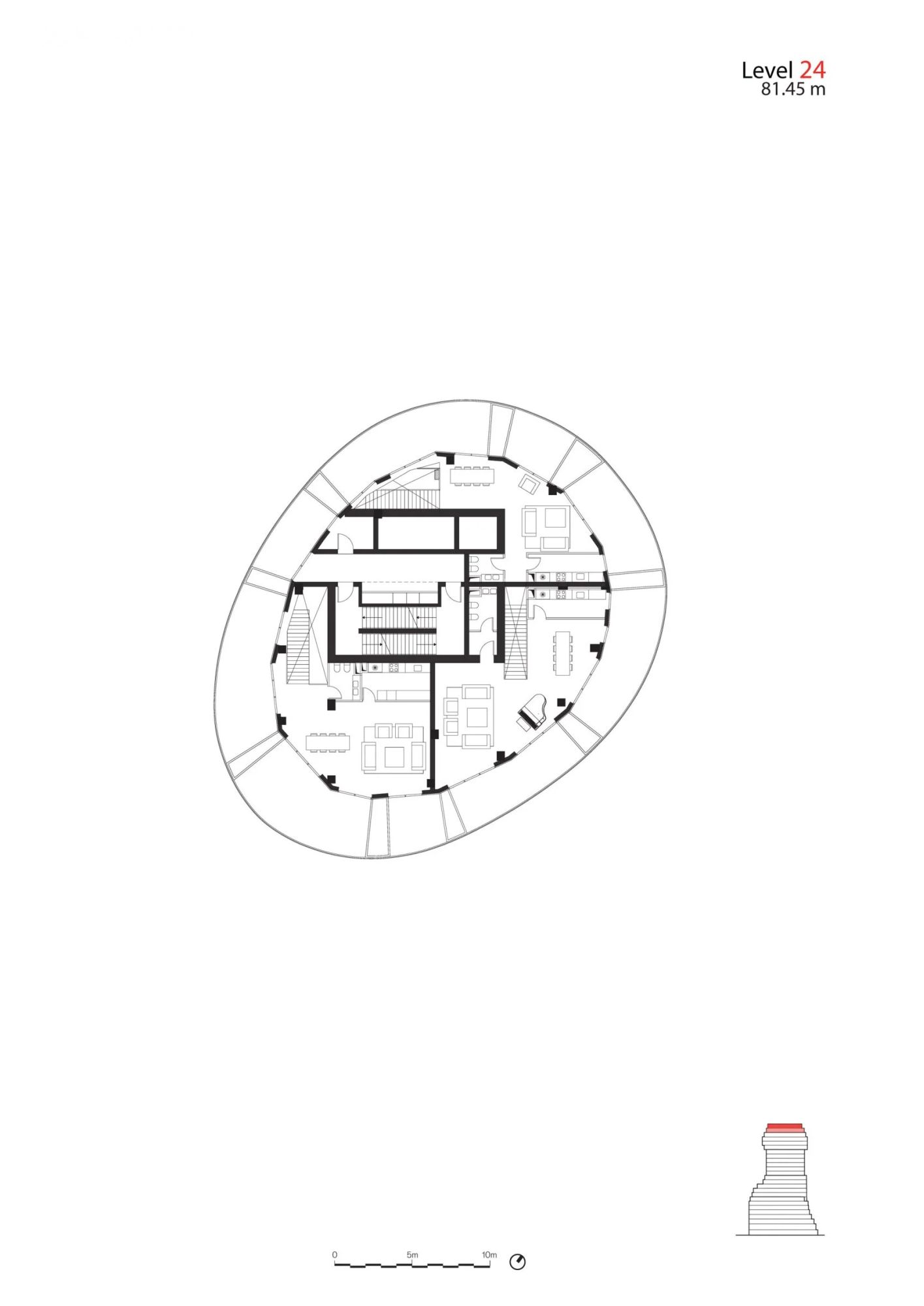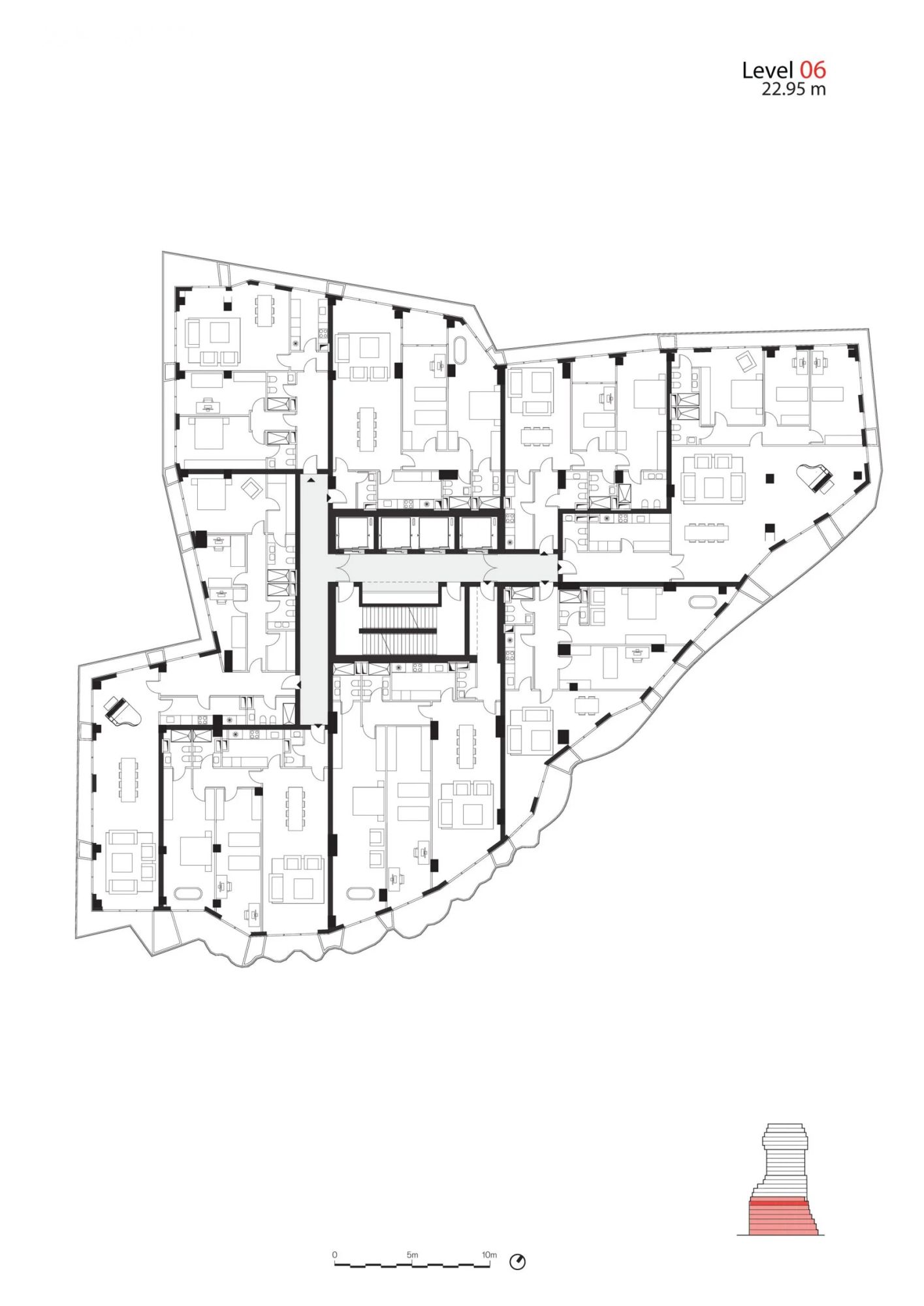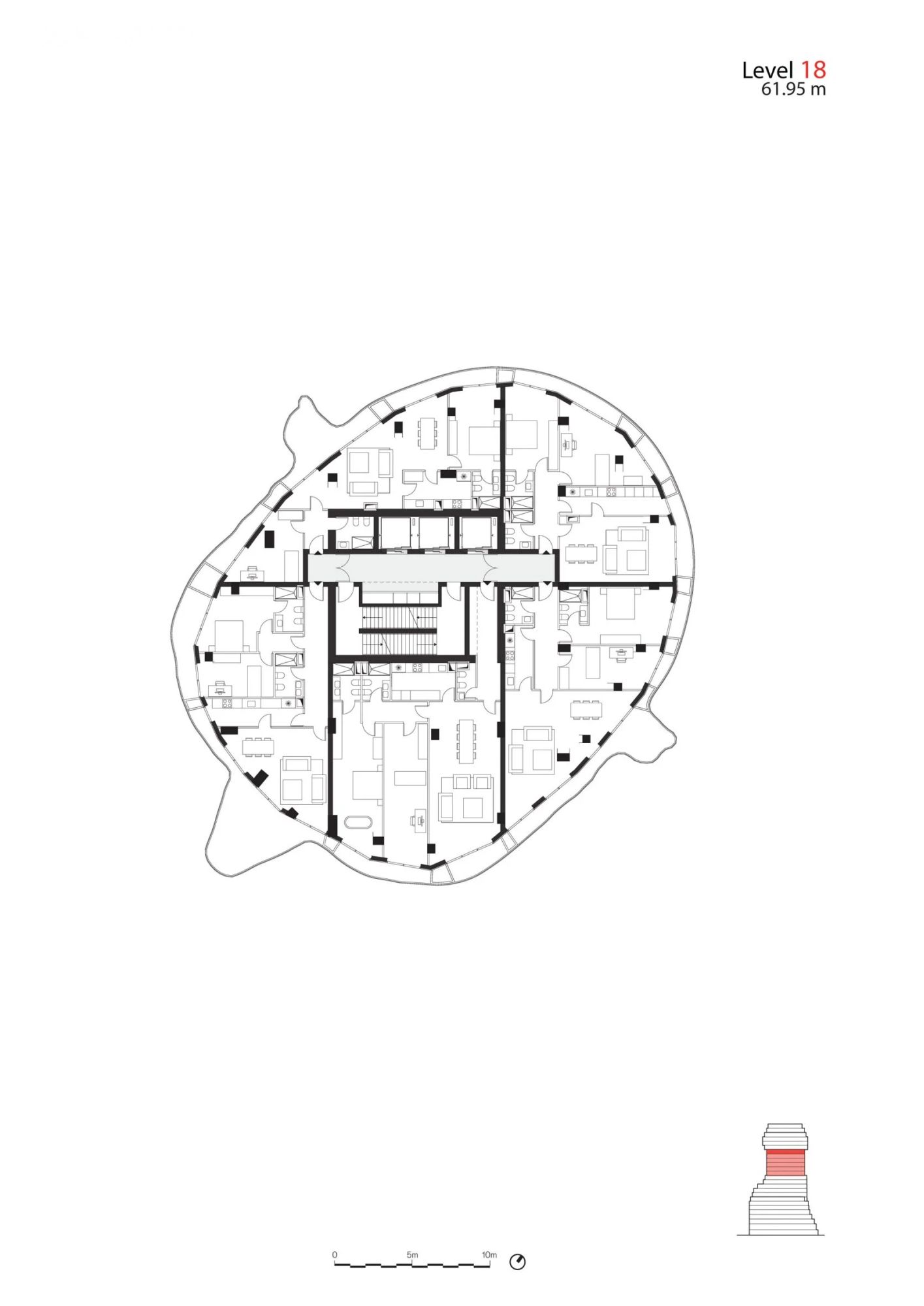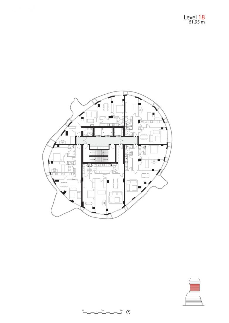 Korišćenjem balkona za stvaranje nepravilnog oblika zgrade, MVRDV je obezbedio da enterijer ima što racionalniju osnovu.