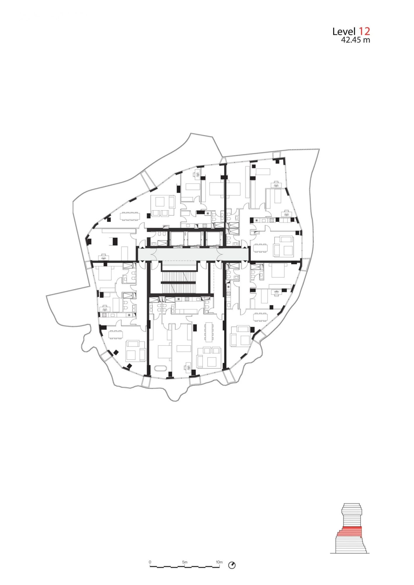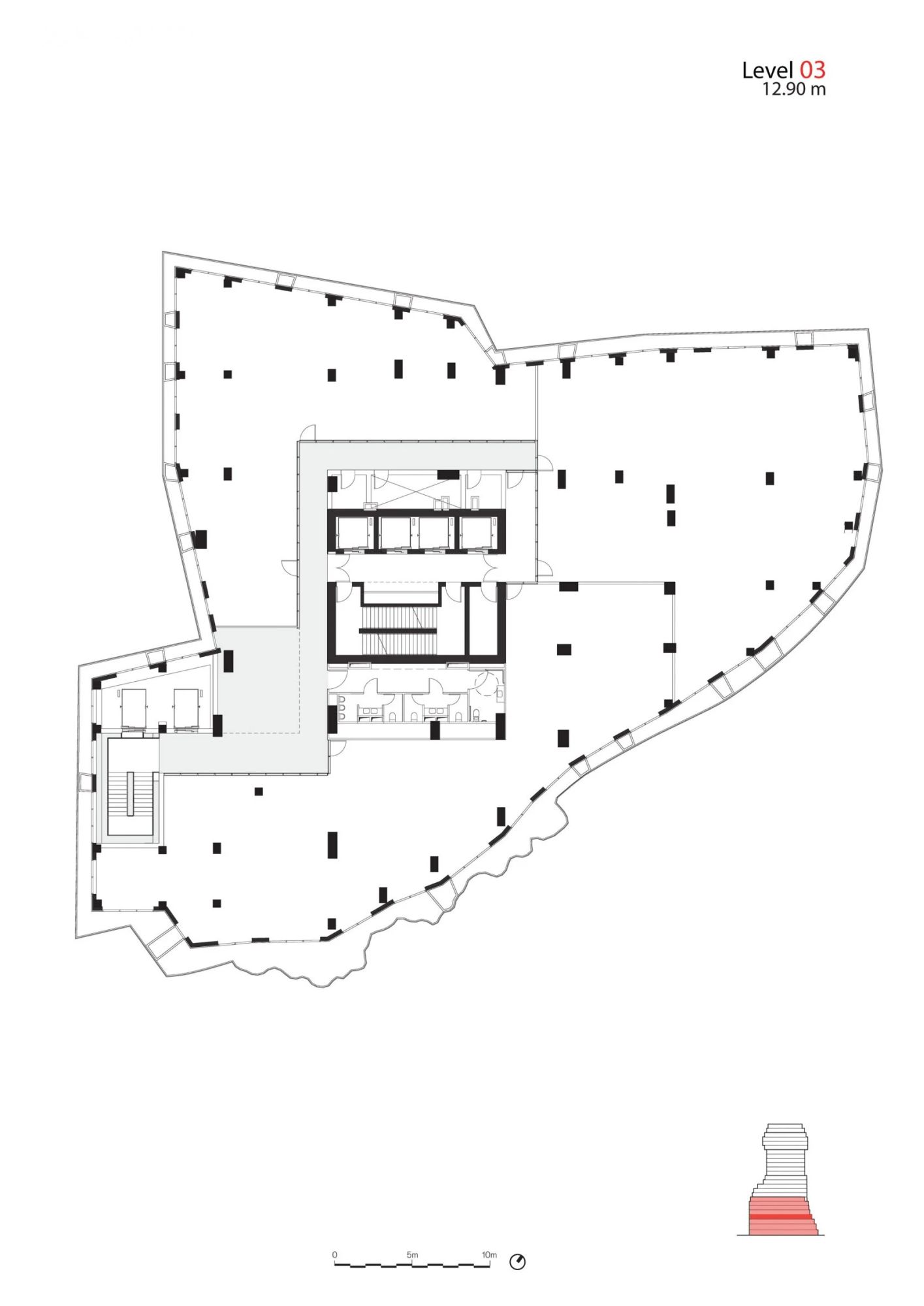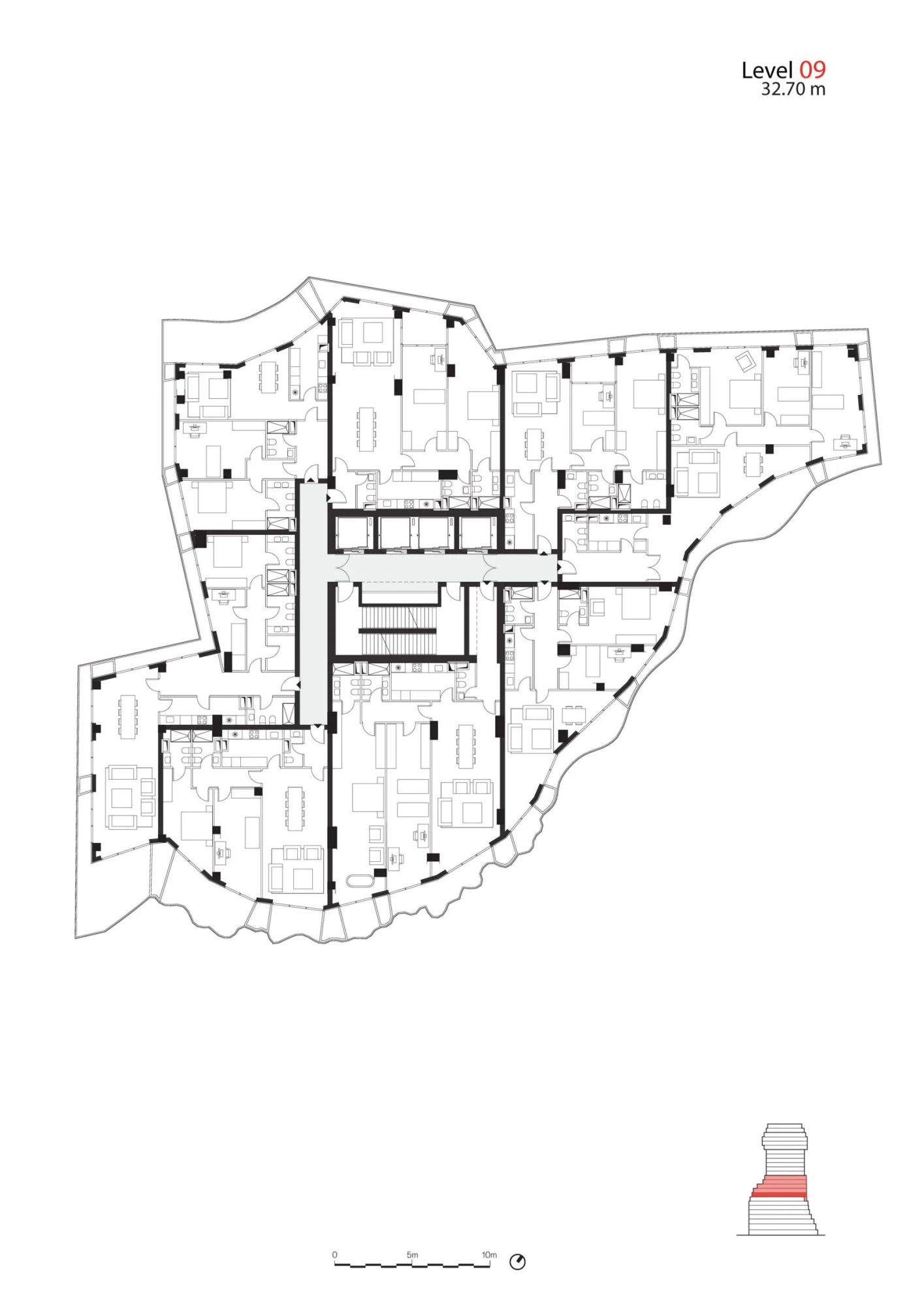 Korišćenjem balkona za stvaranje nepravilnog oblika zgrade, MVRDV je obezbedio da enterijer ima što racionalniju osnovu.