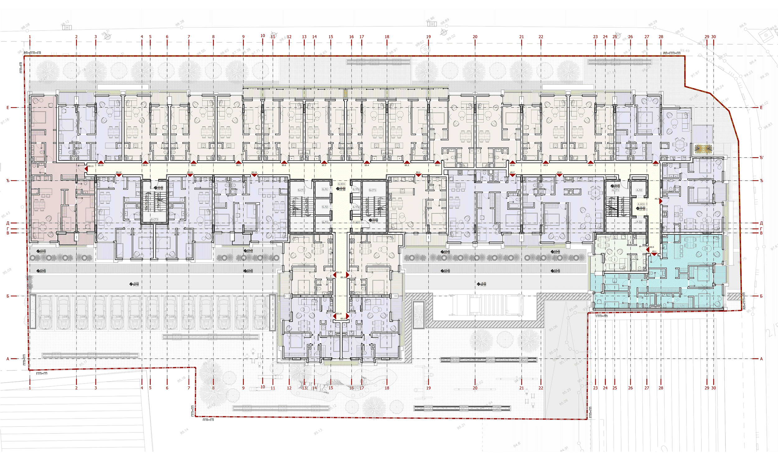 Na prvi pogled, veća lamela ima veoma izduženu koridorsku strukturu horizontalnih komunikacija (hodnika), koja je tipična za današnje stambene zgrade i nije najpovoljnija za organizaciju prostora stambenih jedinica, ali kada se uzme u obzir da je veća lamela većim delom ispunjena manjim stanovima, a da svi veći stanovi mahom imaju dvostranu orjentaciju, možemo zaključiti da je ovo rešenje veoma solidno „upakovano“. Sa druge strane, manja, ugaona lamela ostavila je znatno više prostora za razmišljanje i virtuoznost autora, što se oslikava i na fasadi objekta.