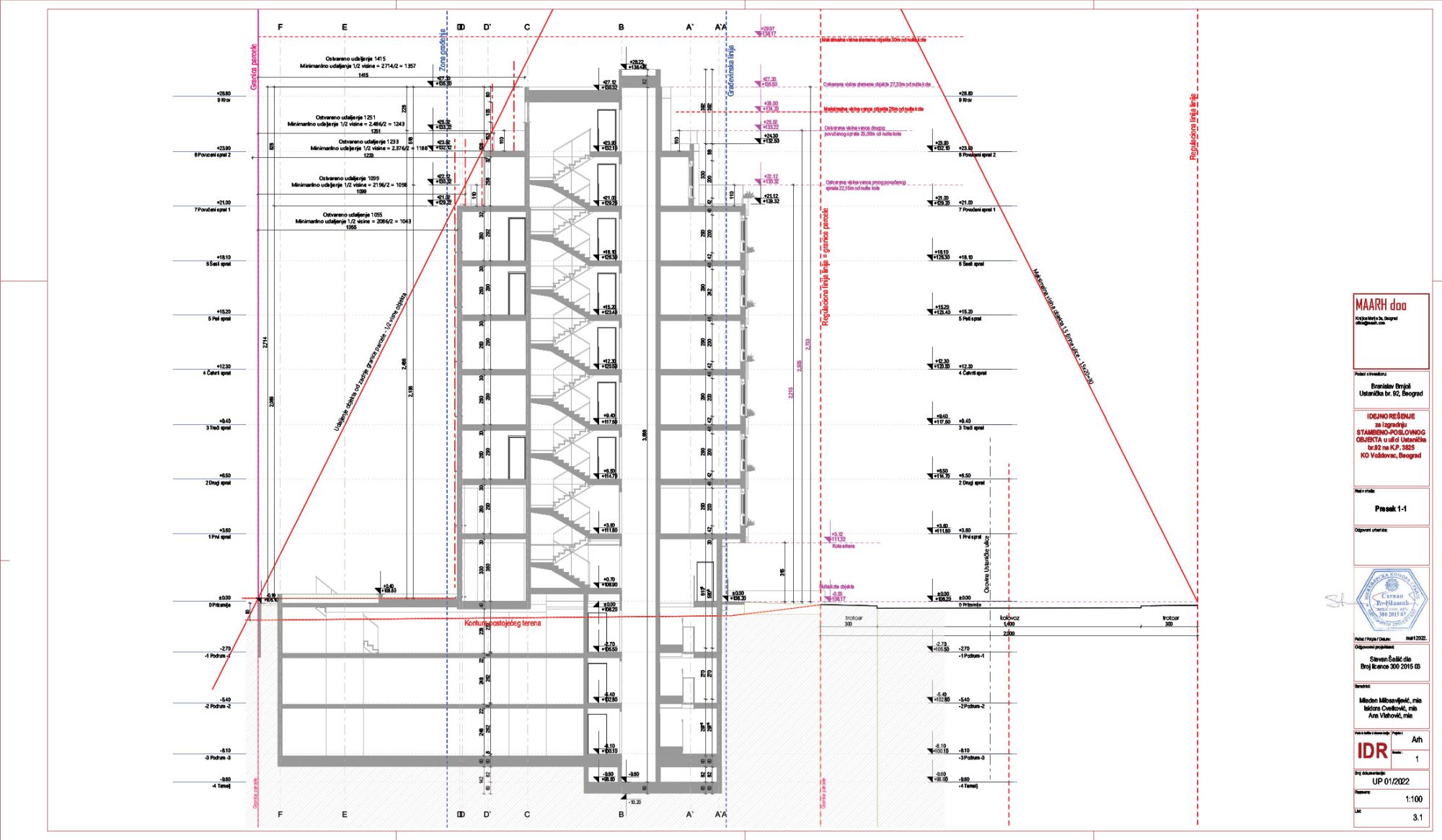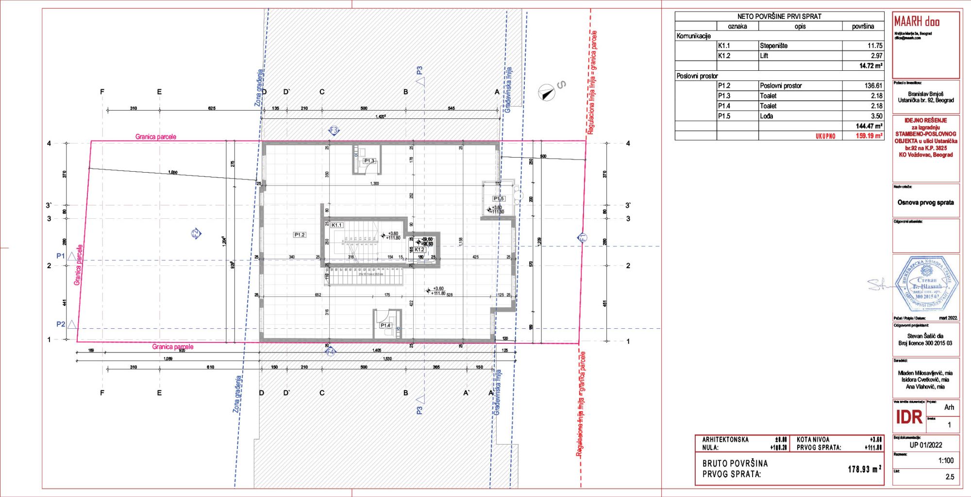 Nosilac izrade predmetnog UP-a i Idejnog rešenja projekta arhitekture je beogradsko preduzeće MAARH, kao odgovorni projektant potpisan je Stevan Šašić, dia, dok je investitor jedno fizičko lice iz Beograda.