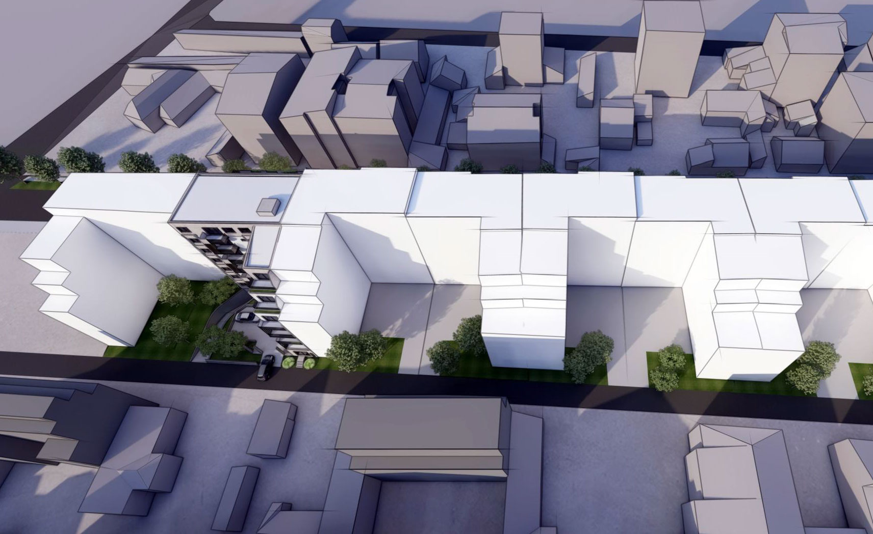 Kao što možemo videti iz urbanističkog projekta, planiran je niz zgrada slične geometrije koje će verovatno biti predmet dalje razrade.
