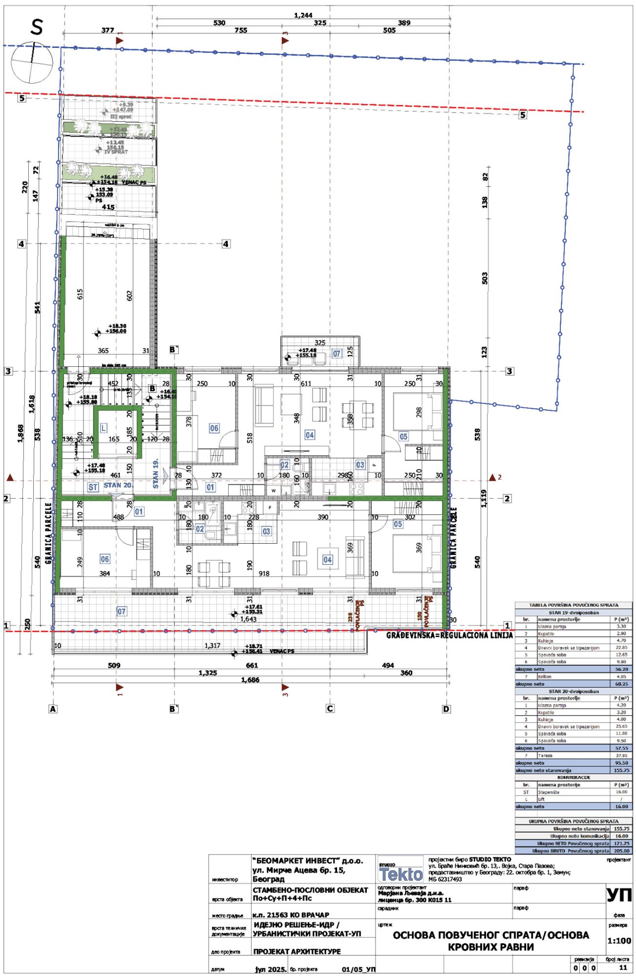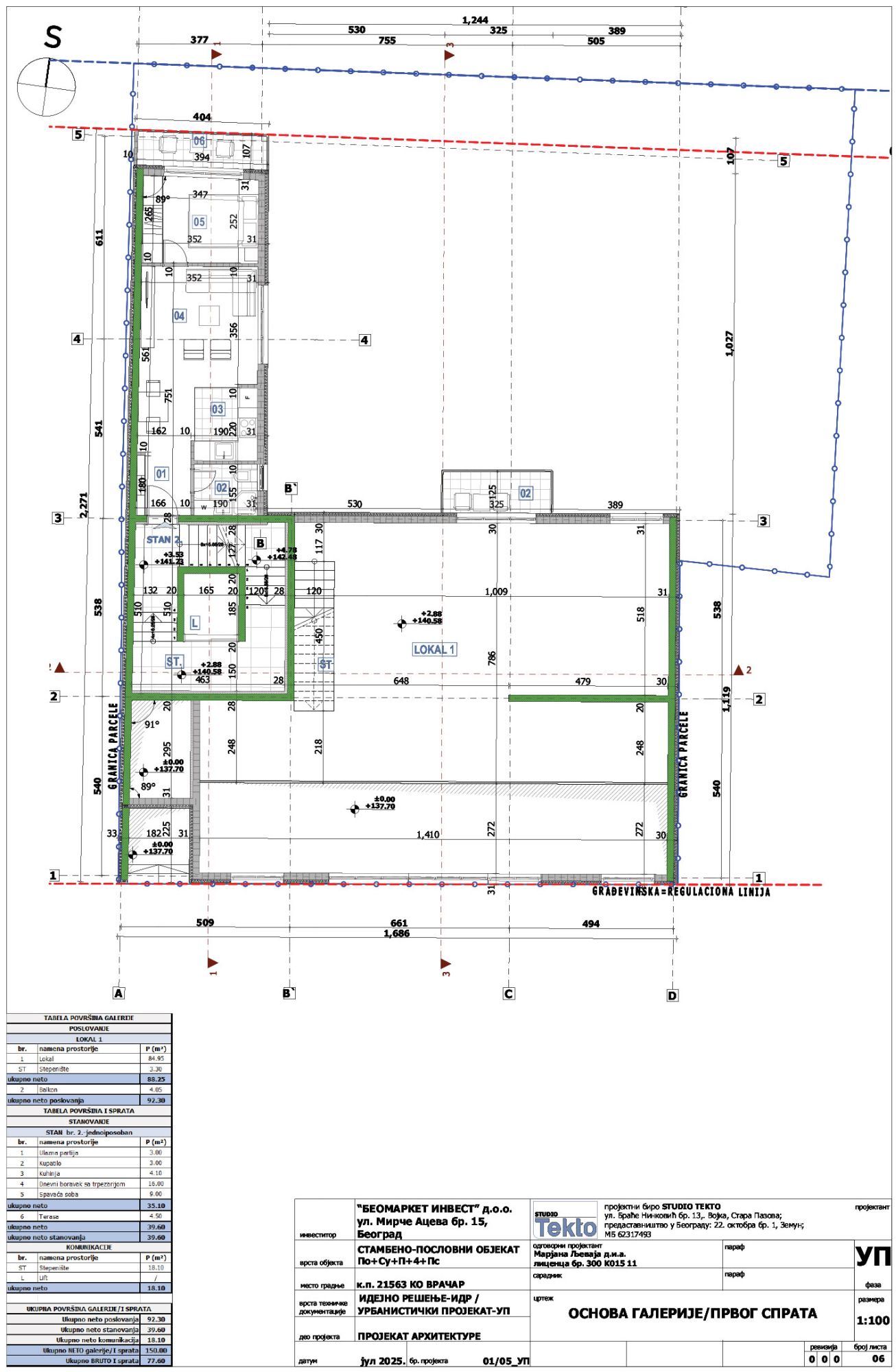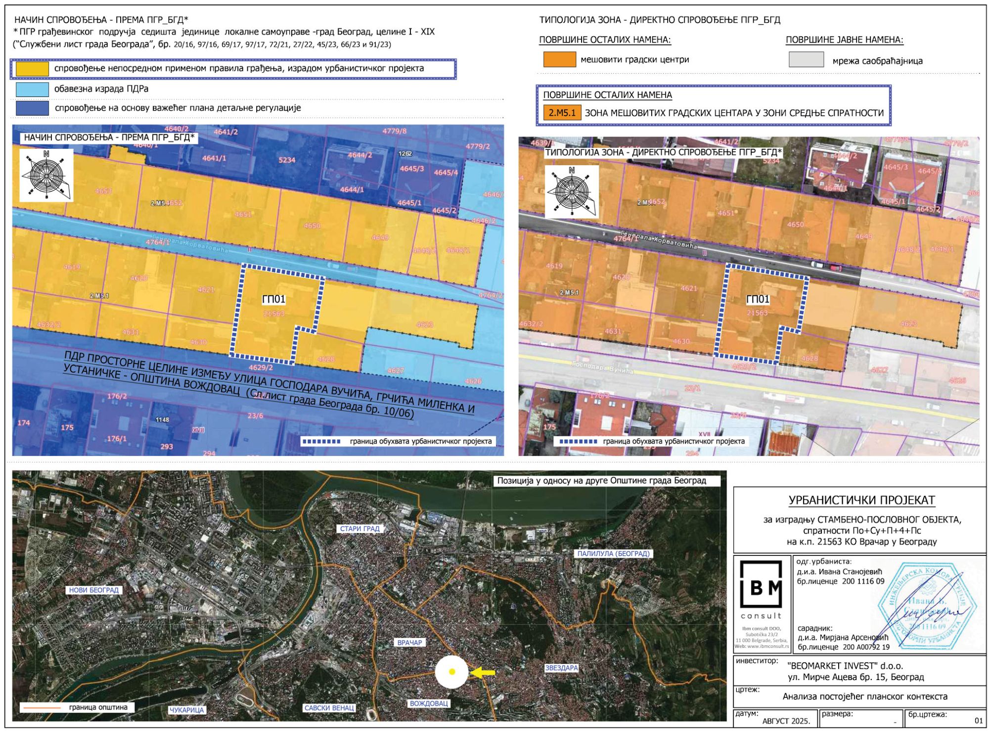 Granica projekta definisana je granicom KP 21563 KO Vračar u Beogradu, koja ujedno predstavlja i građevinsku parcelu GP01 površine 480 kvadrata.