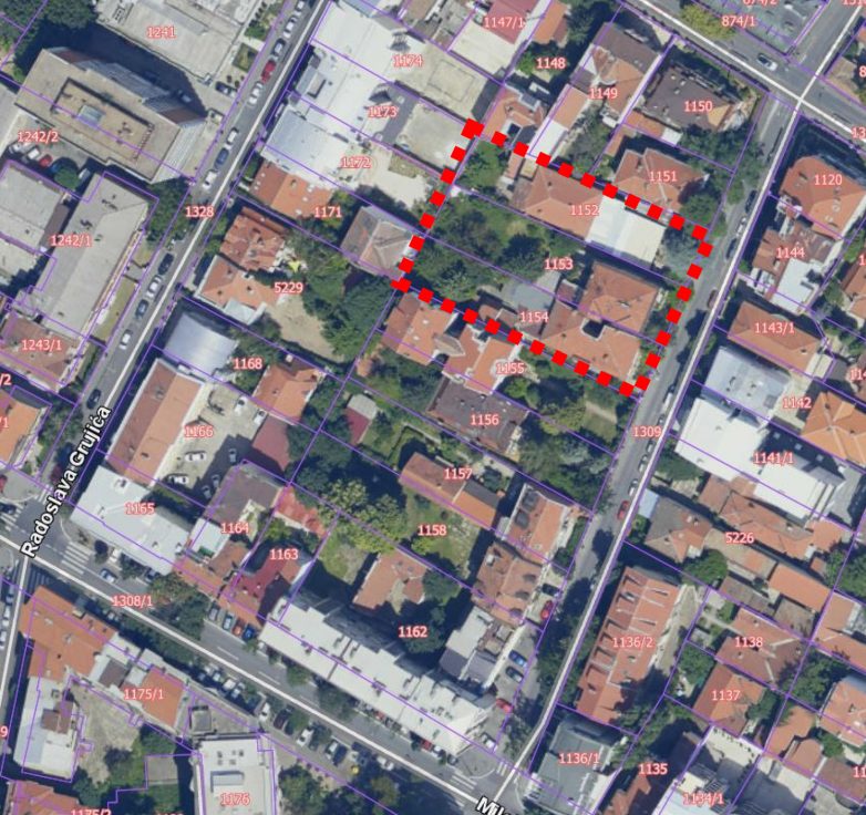 Predmetna lokacija nalazi se u mirnom kraju Vračara, u ulici koja je jednosmerna i nije previše frekventna, a prema projektu, tri katastarske parcele trebalo bi da se spoje u jednu – površine 19 ari i 79 kvadratnih metara (1.979,00 m2).