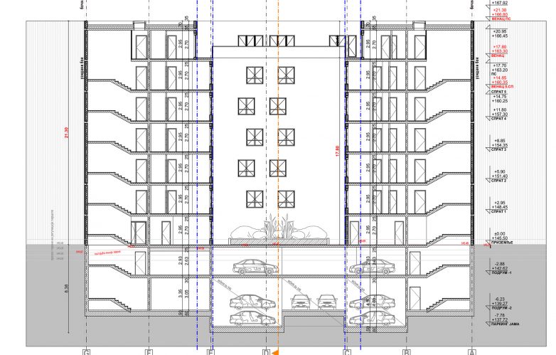 Projektovani objekat se sastoji iz dve lamele – lamele A i lamele B koje se sastoje od dve podzemne i sedam nadzemnih etaža.