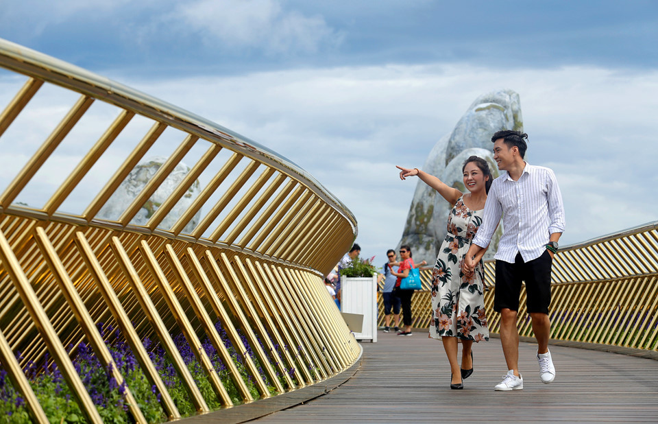 Neobični pešački most s ogradom zlatne boje otvoren je početkom juna u okviru popularne turističke lokacije Thien Thai Garden. Smešten je na visini od 1.400 metara nadmorske visine, zbog čega je jedva vidljiv sa podnožja planine. Most je dug 150 metara i podeljen je u osam celina, a svaku od njih razdvaja džinovska kamena skulptura u obliku ljudske šake.